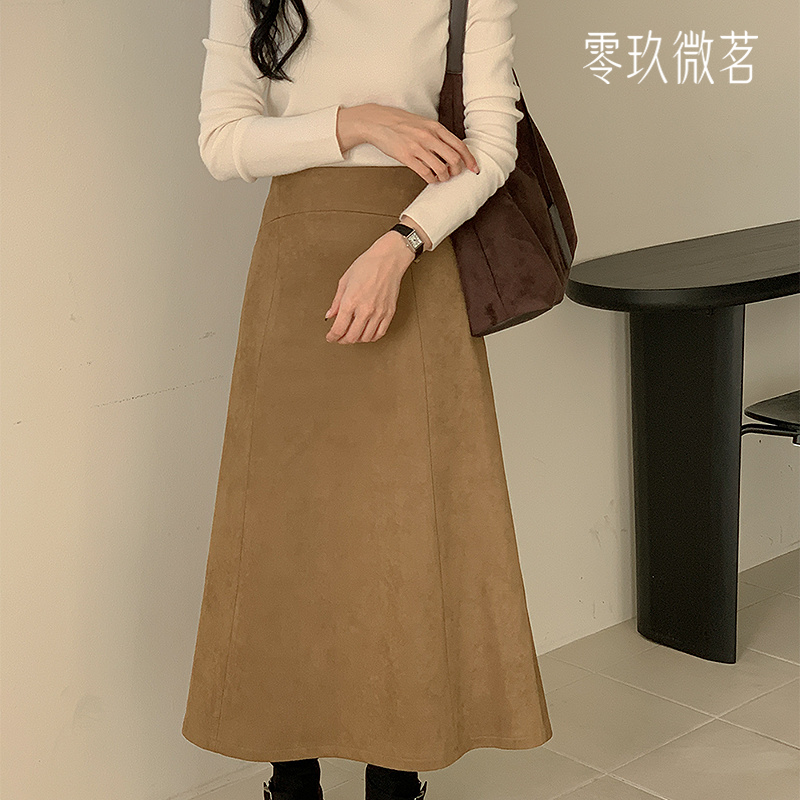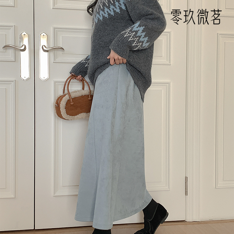 09women大码春时尚羊羔皮修身气质长裙松紧腰休闲显瘦伞裙79385