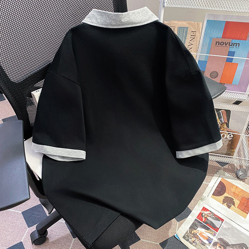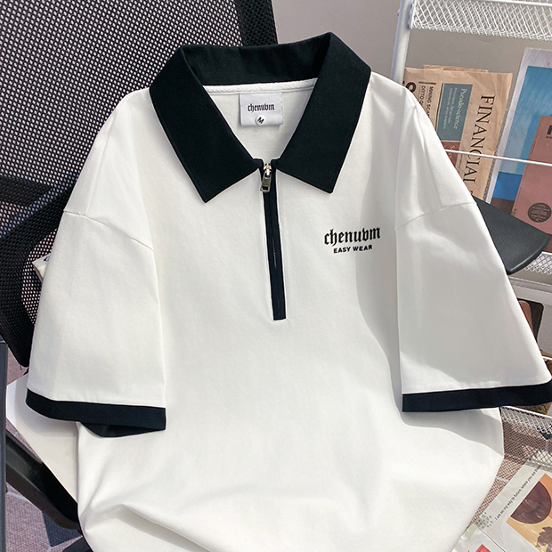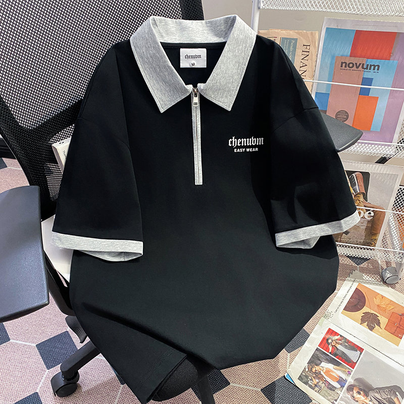 CHENUVM美式潮牌半拉链短袖polo衫男款夏季纯棉宽松翻领半袖上衣