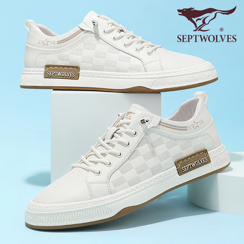 七匹狼真皮板鞋男士鞋子春季新款小白鞋透气增高鞋防滑运动休闲鞋