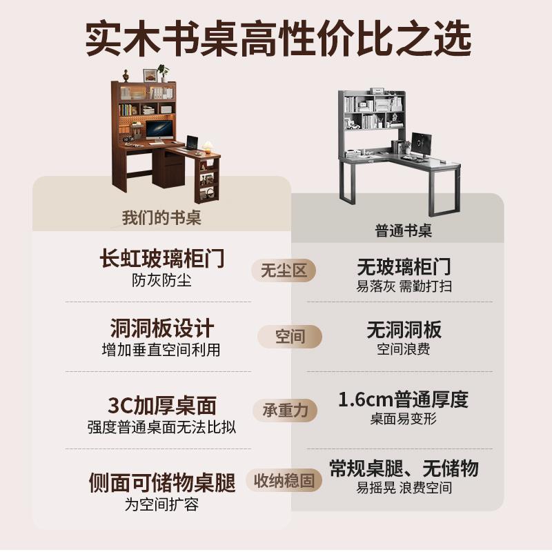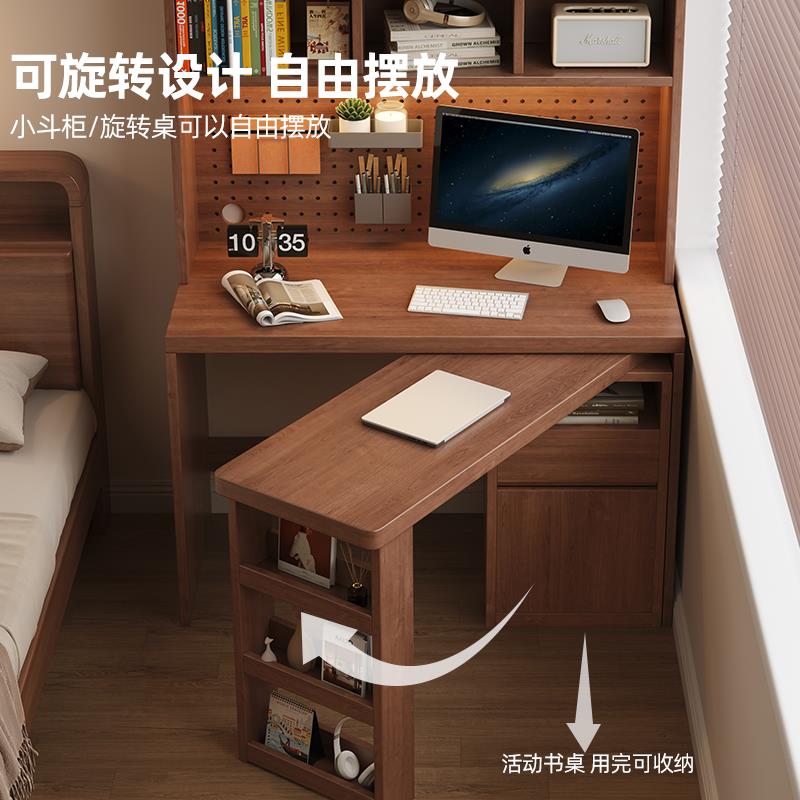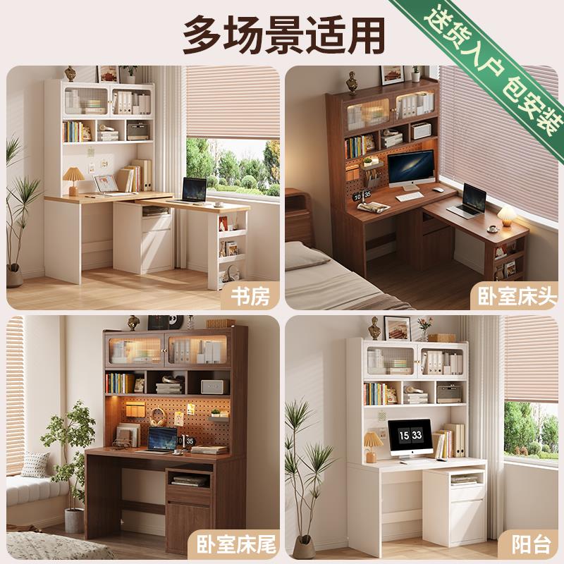 书桌书架一体实木桌转角电脑桌家用靠墙小户型学生书柜组合办公桌