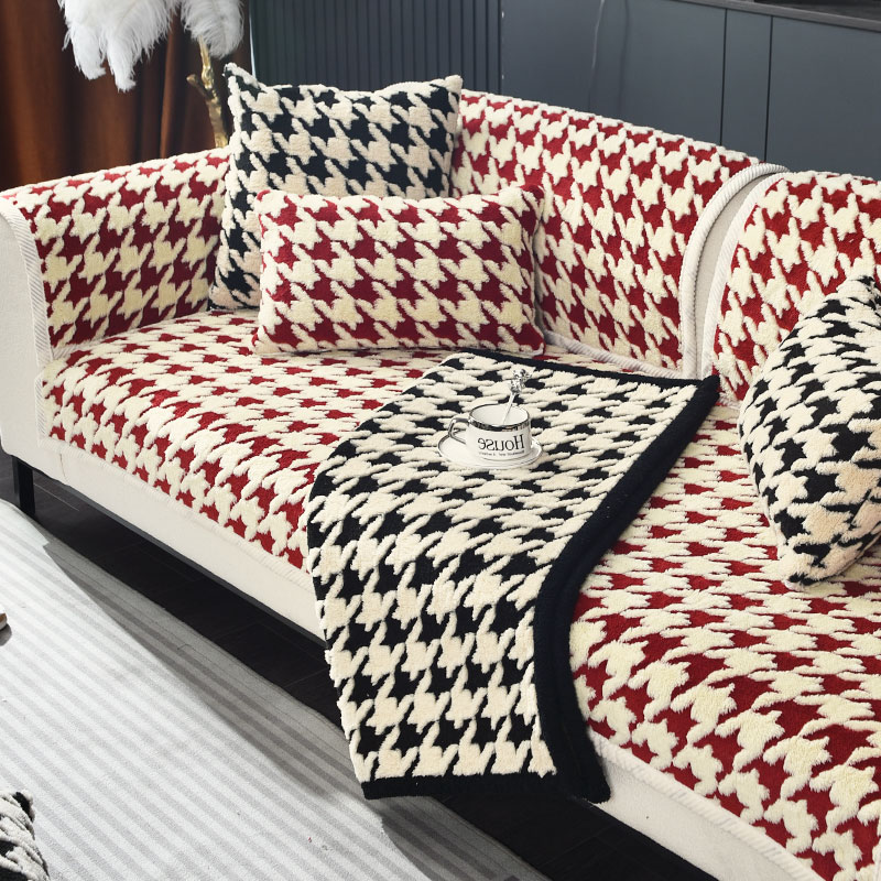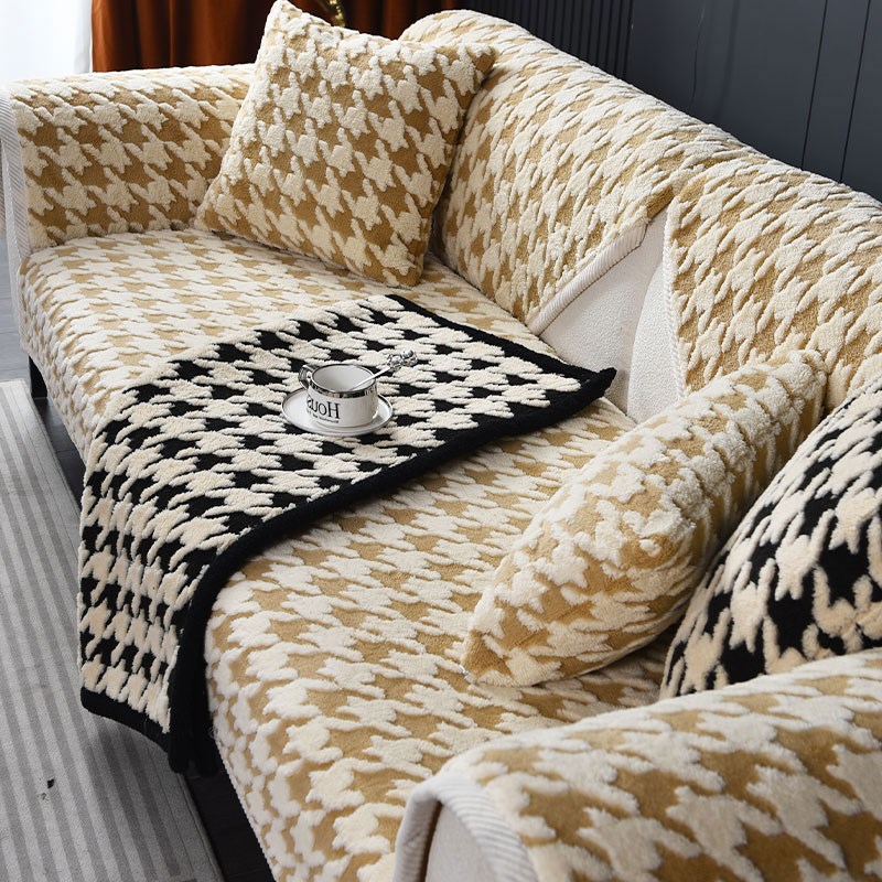 速发202新款加厚毛绒沙发垫冬季坐垫高级感防滑皮沙发套罩盖布