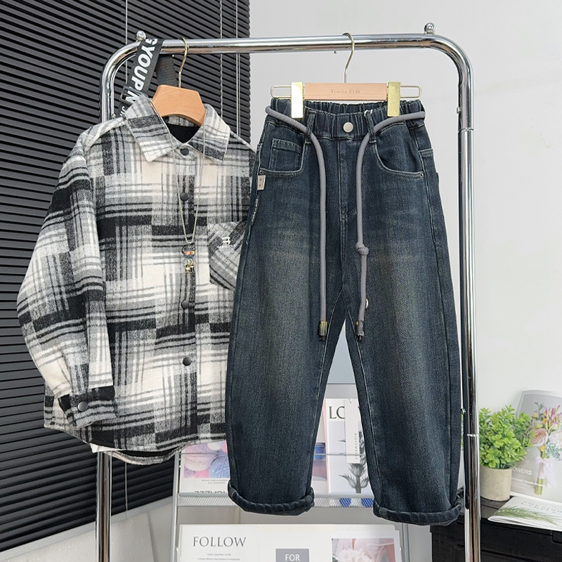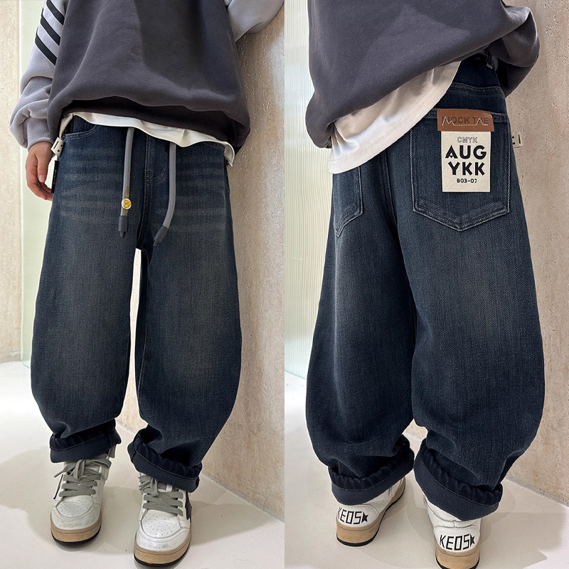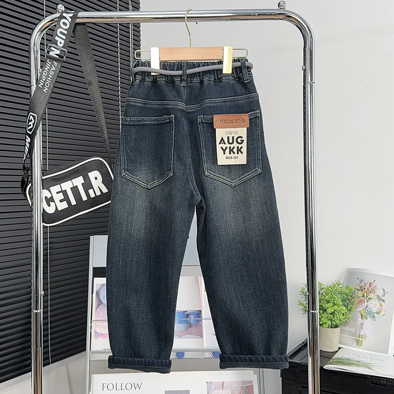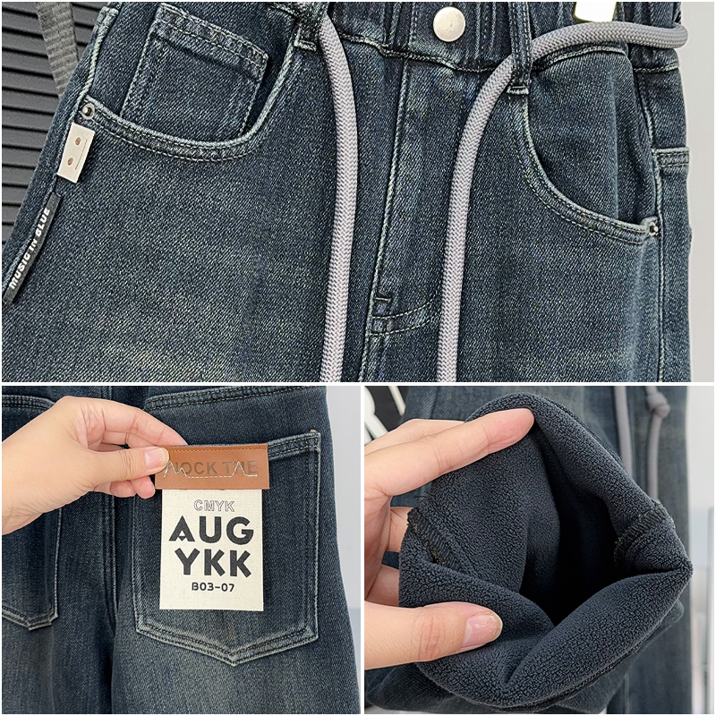 大E小e童装儿童加绒裤子冬季中大童加厚牛仔裤男童保暖休闲裤6651