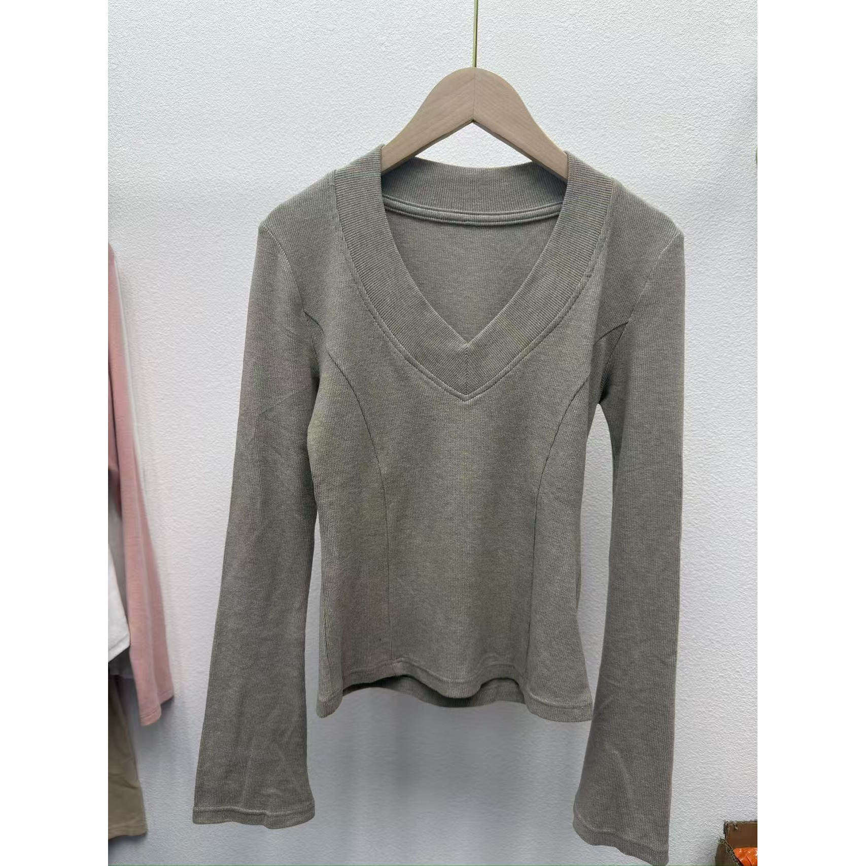 V领长袖T恤女修身显瘦百搭打底衫上衣1060