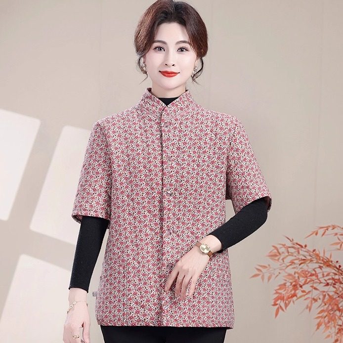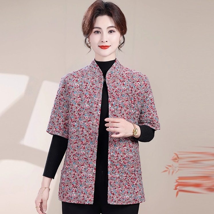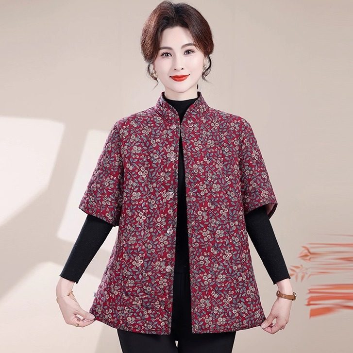 中老年妈妈碎花小棉衣冬装居家保暖棉袄老年人女外穿加厚中袖马甲