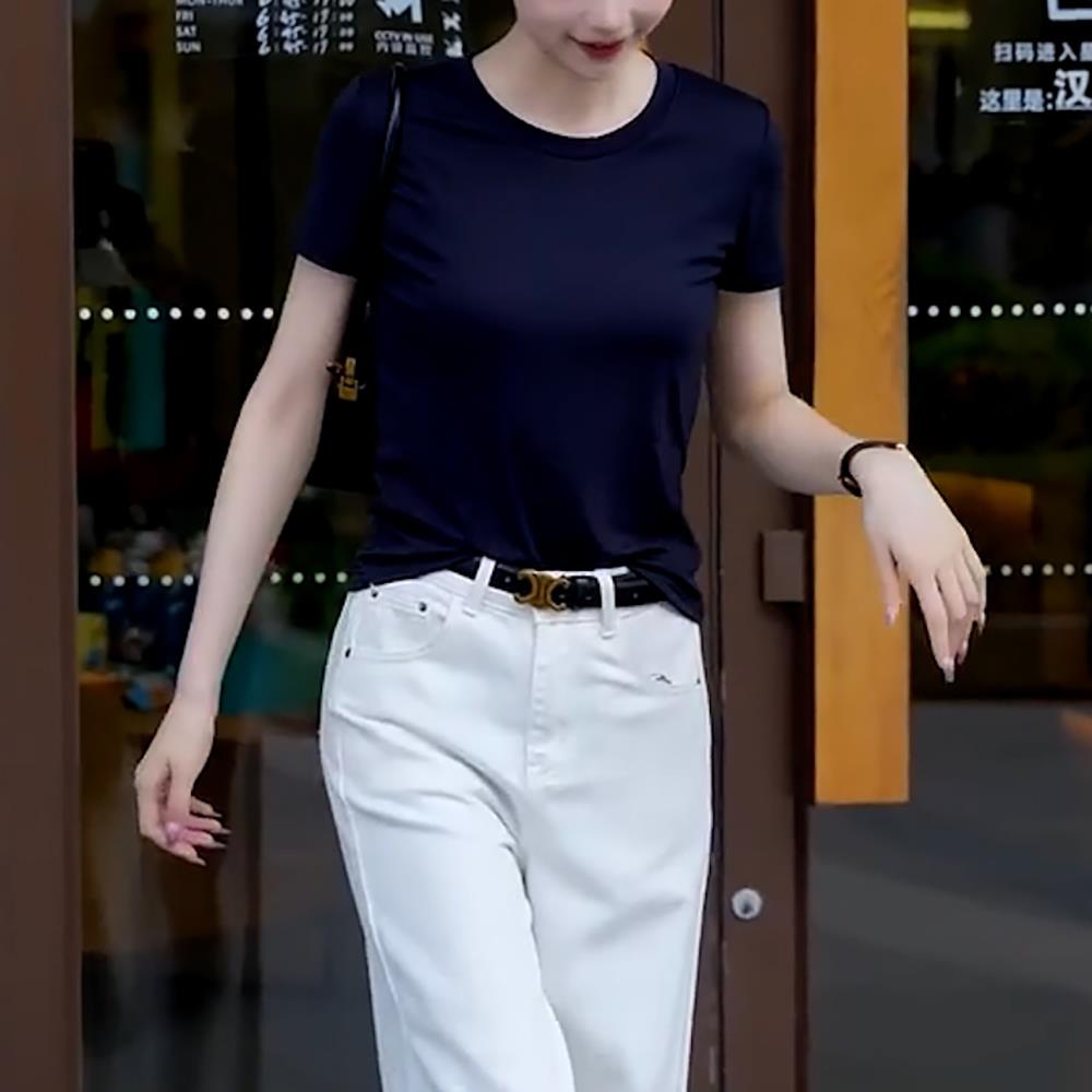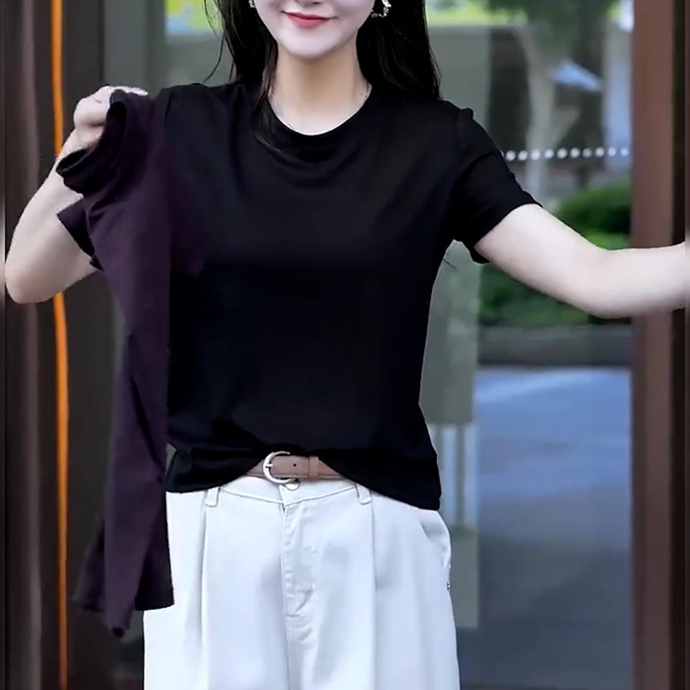 短袖女t恤2025新款夏简约纯色气质上衣早秋白色正肩内搭打底衫