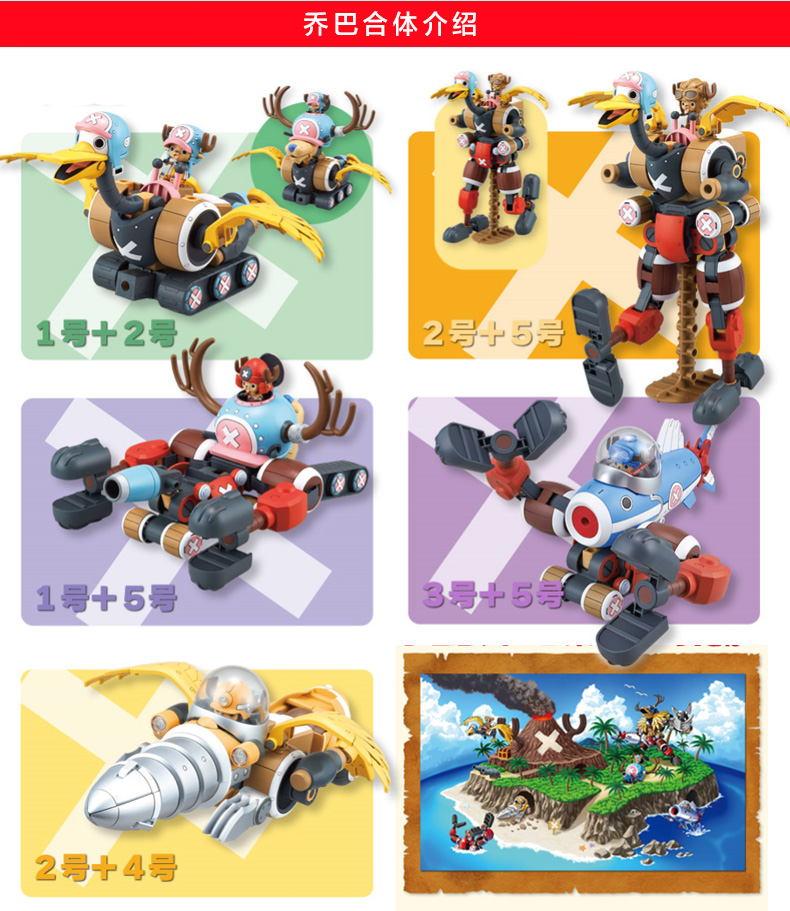 万代海贼王拼装模型乔巴合体机器人1/2代 坦克飞翼潜艇钻车吊车