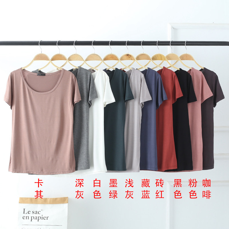 新款 圆领短袖t恤女夏纯色修身体恤女士韩版打底时尚上衣女打底衫