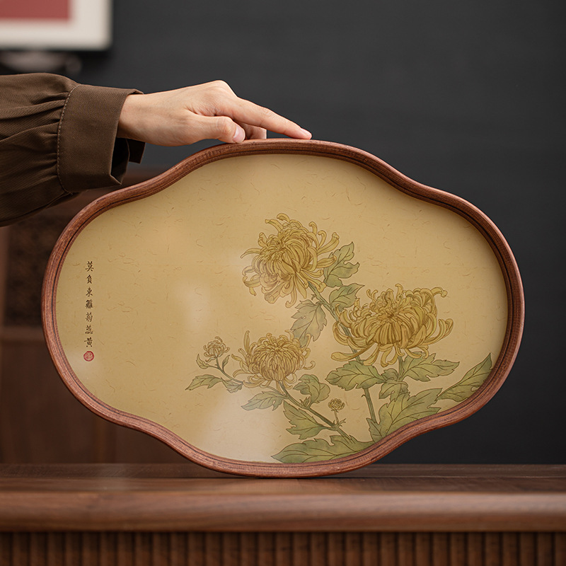 海棠玻璃荷花托盘茶盘小型中式壶承台竹制高档茶具收纳盘茶台