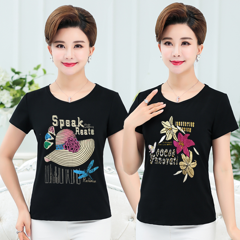 夏装新款莫代尔棉t恤女中老年妈妈纯棉短袖上衣宽松大码洋气小衫