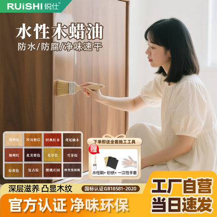 锐仕水性木蜡油室内实木家具纯天然木桌透明防虫防腐防水防霉清漆