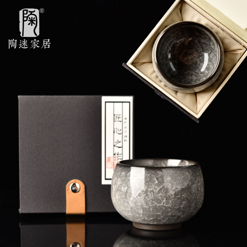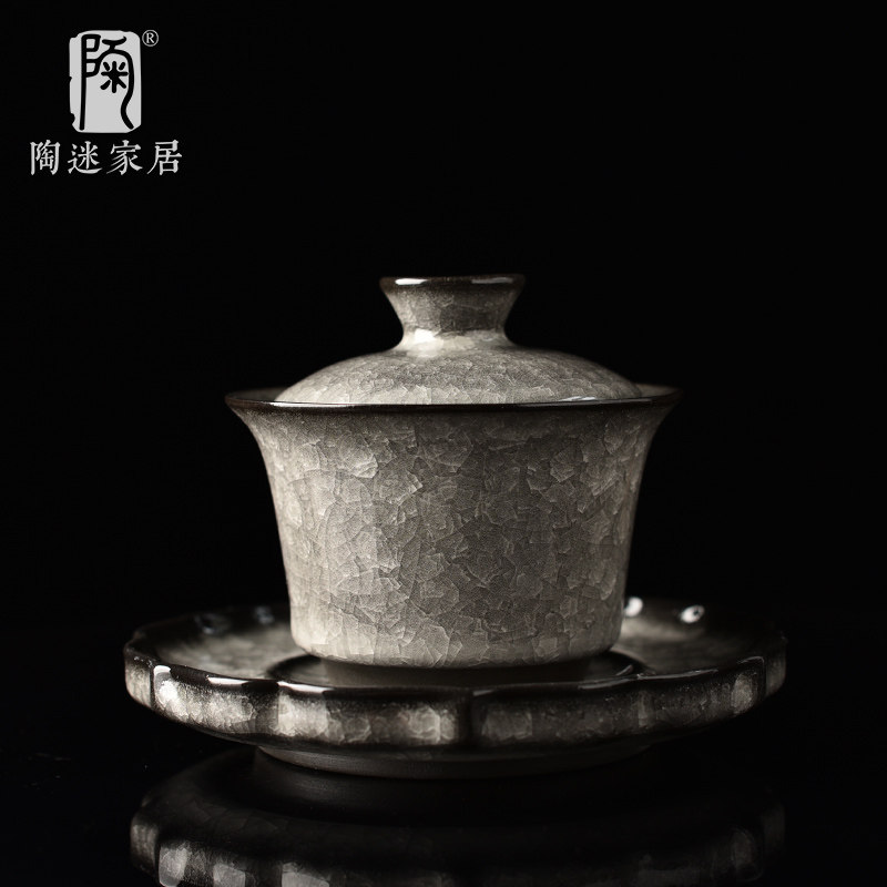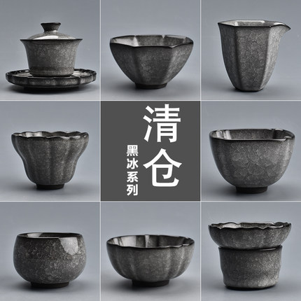 黑冰裂纹茶杯开片主人杯陶瓷茶盏茶具套装大号盖碗中式高档品茗杯