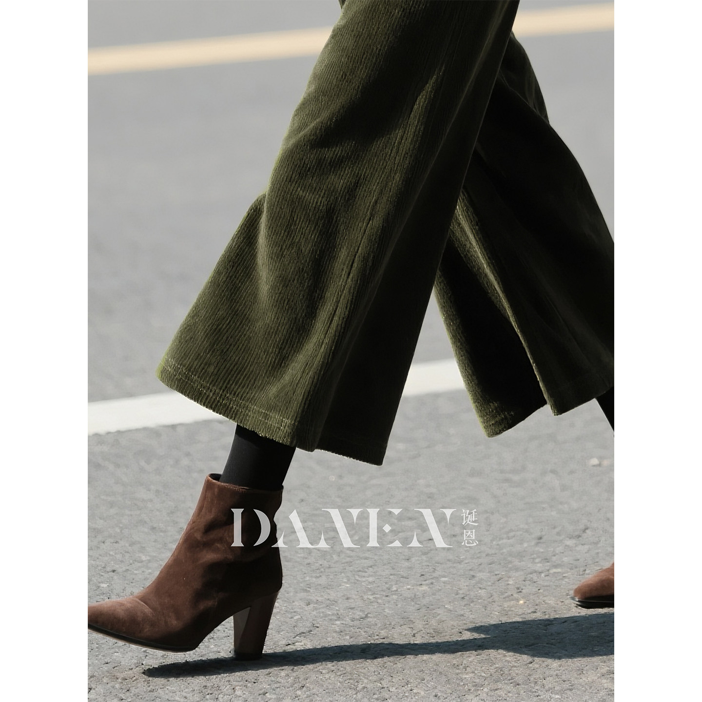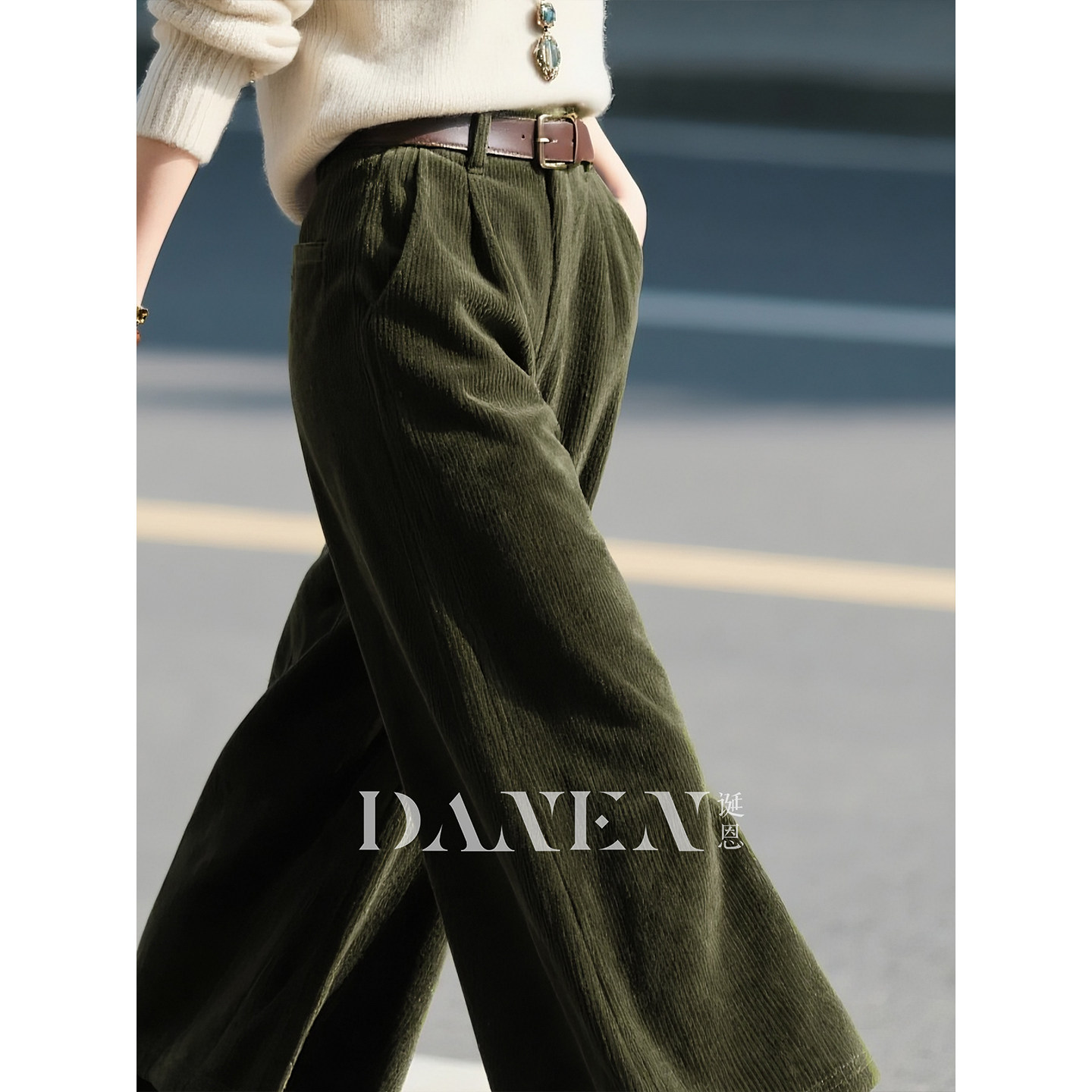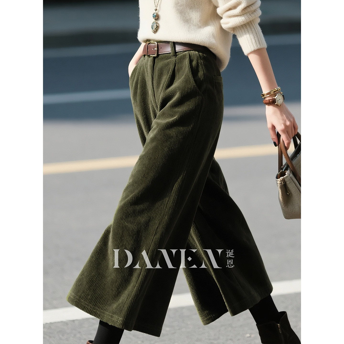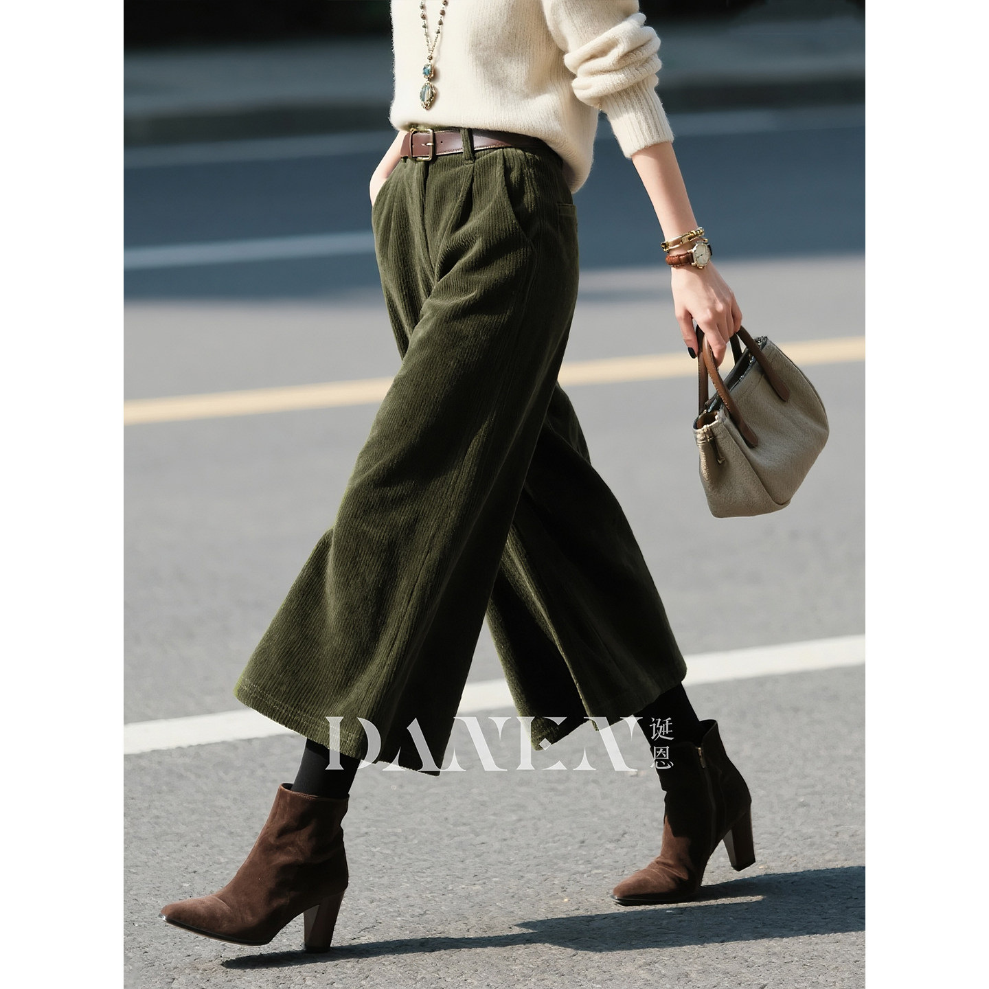 橄榄绿灯芯绒七分阔腿裤女秋冬
