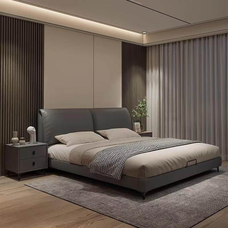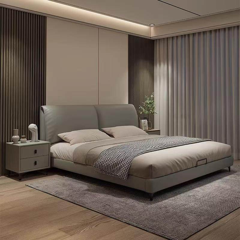意式轻奢真皮床网红大象耳朵双人床简约主卧齐边床高箱收纳储物床