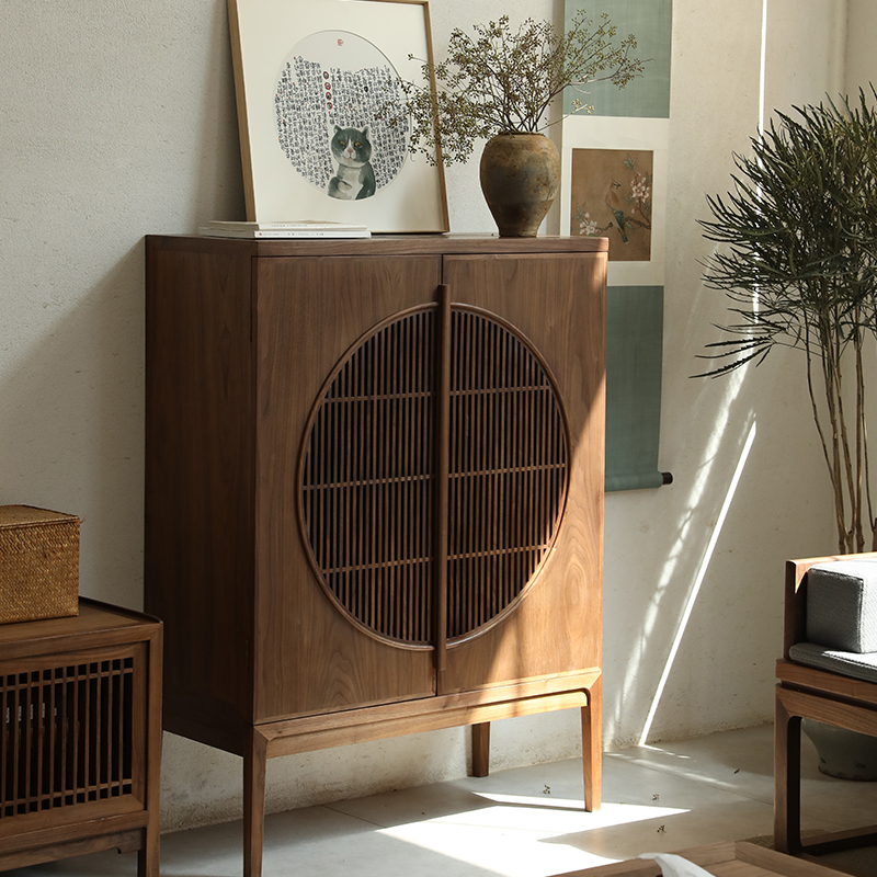 璞木新中式鞋柜餐边柜玄关柜禅意黑胡桃木家具原木实木书柜门厅柜