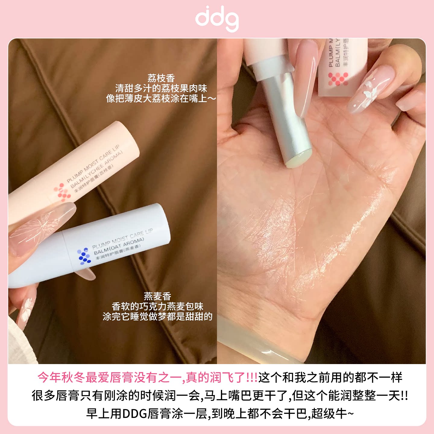 ddg燕麦荔枝润唇膏女保湿滋润补水防干裂淡化唇纹唇膜精华