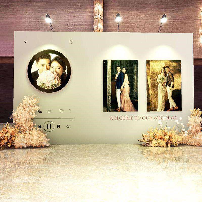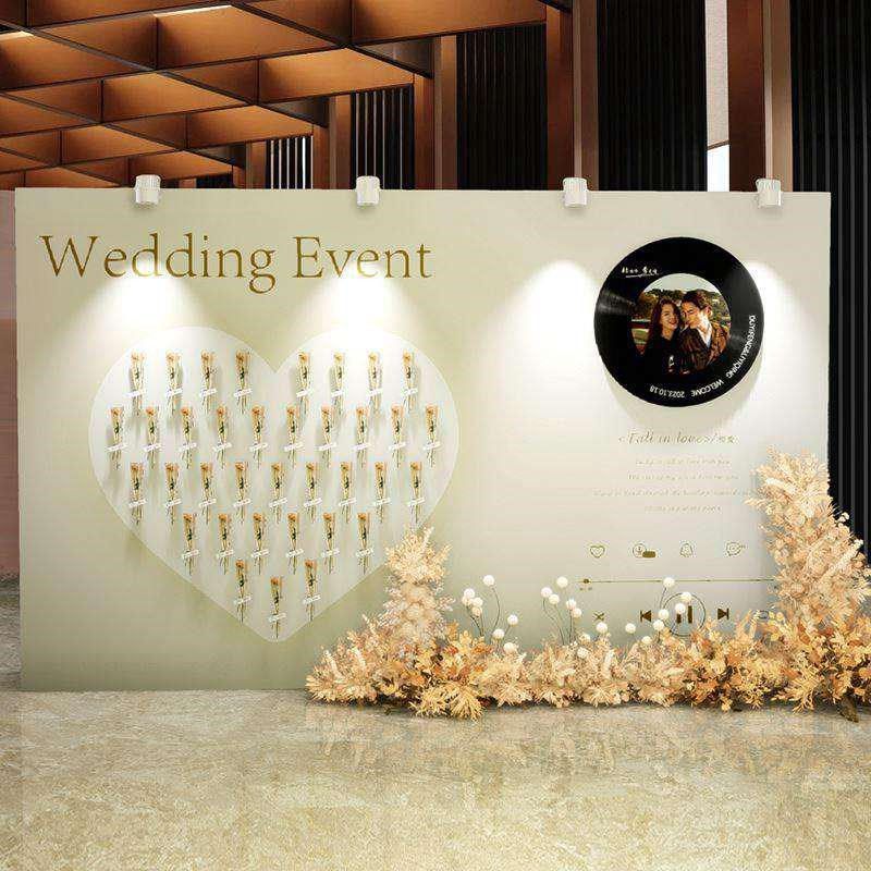复古唱片机订婚布置装饰场景迎宾牌结婚礼留影区高级感板背景墙