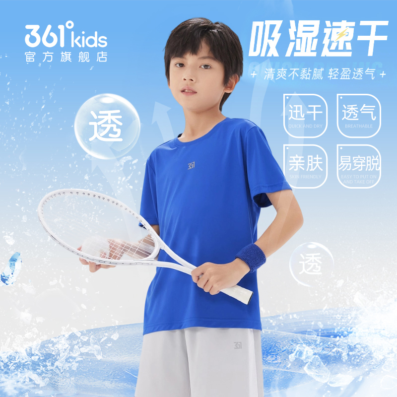 361度童装儿童套装男童夏季大童短袖T恤运动短裤凉感速干女童套装