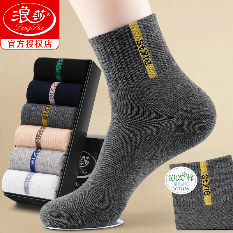浪莎袜子男款青少年冬季纯棉吸汗防臭透气运动加厚男士中筒全棉袜