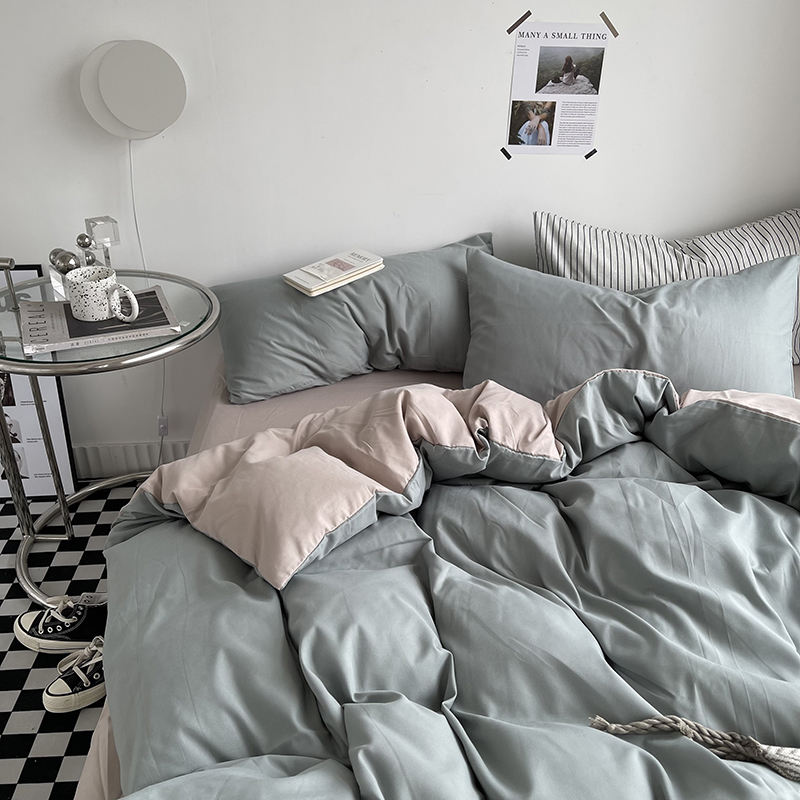 简约纯色四件套纯棉水洗棉全棉床单套床上用品宿舍被罩三4件套