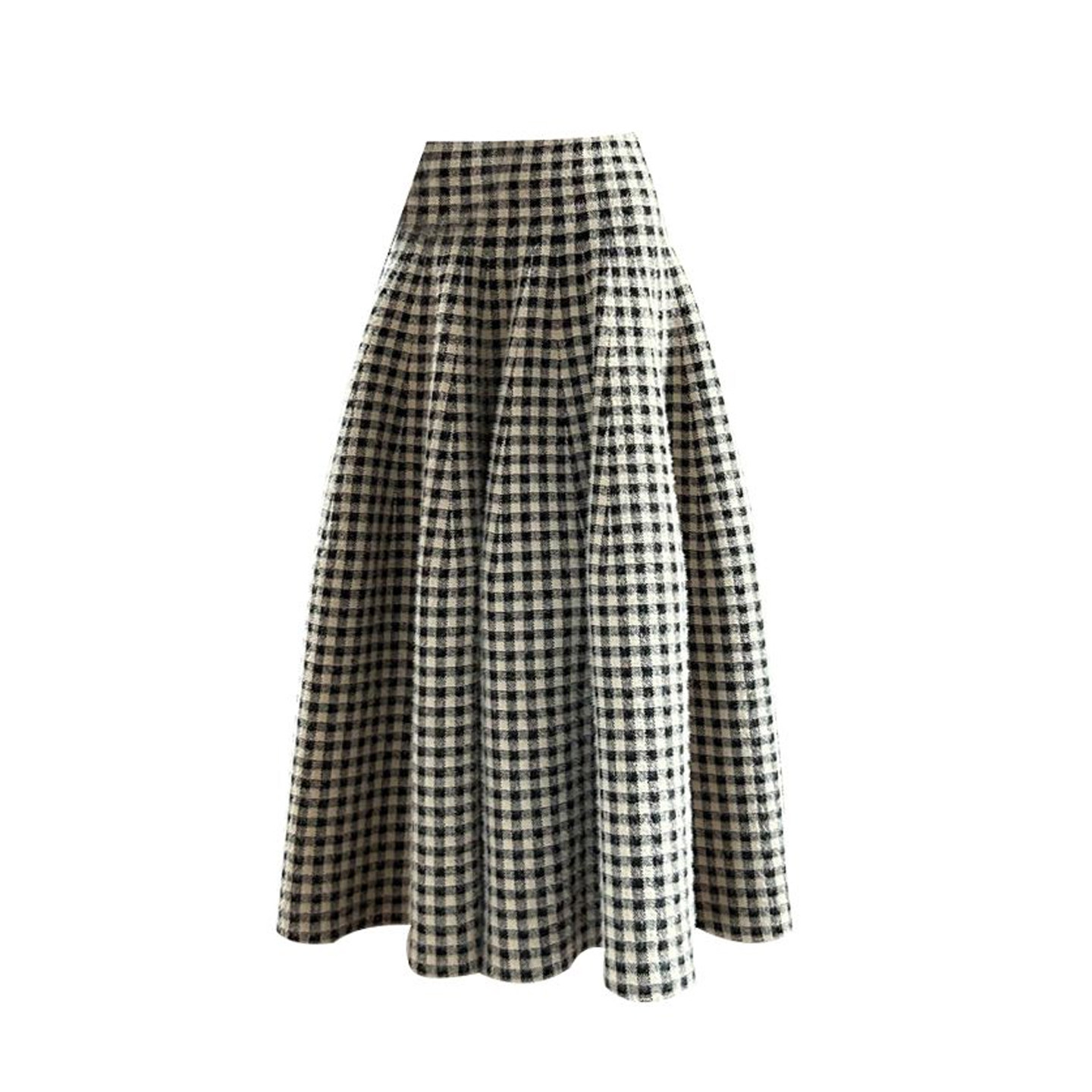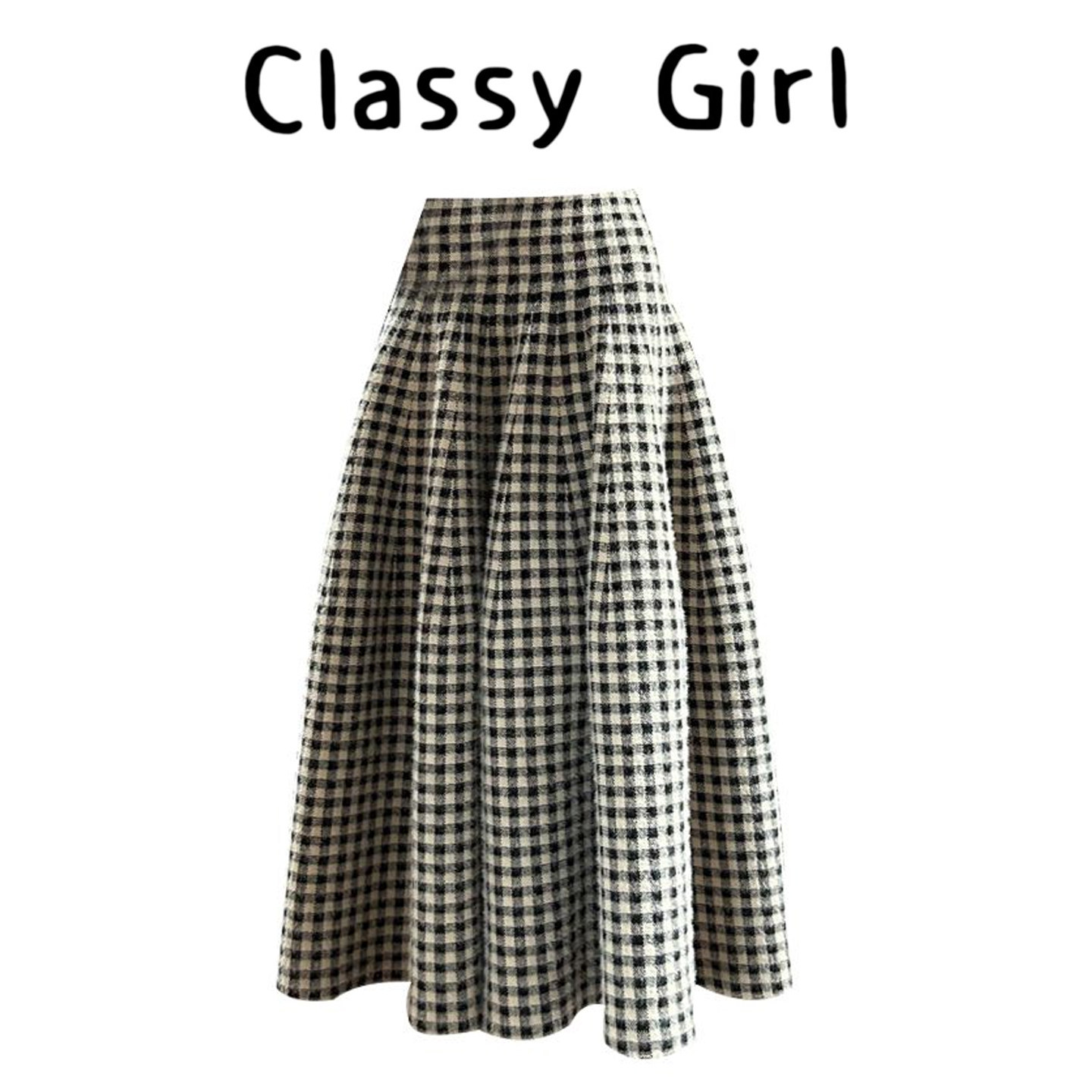 大码胖mm毛呢格子半身裙女冬季高腰磨毛加厚呢子伞裙大摆长裙子