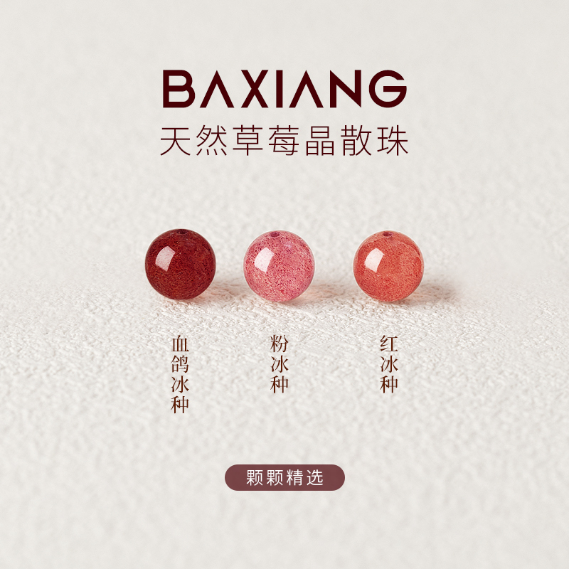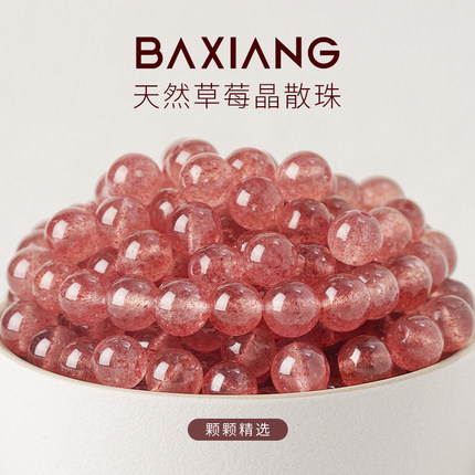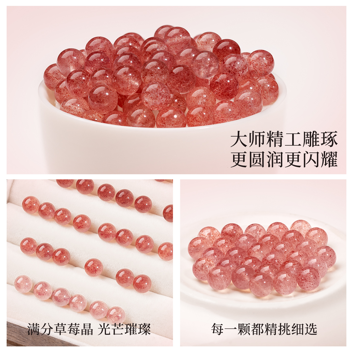 草莓晶散珠女天然粉水晶散珠子串珠手工车厘子配件鸽血红绿金手链