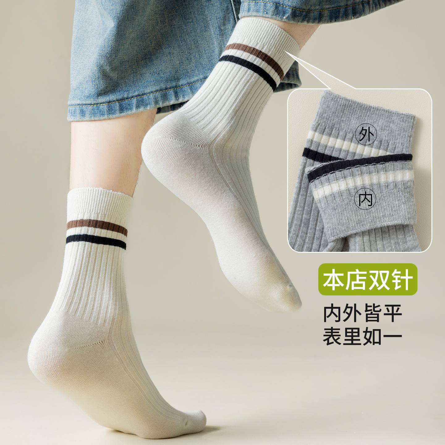 男士袜子男长筒袜春秋款纯棉防臭吸汗棉袜青少年秋冬运动中筒袜潮