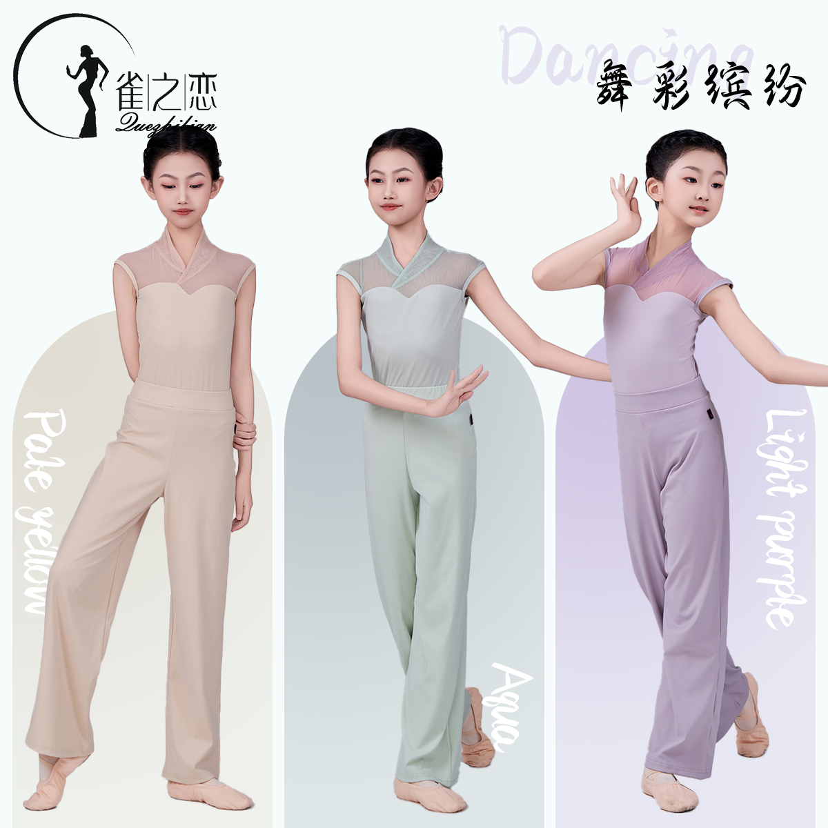 舞蹈服儿童女少儿芭蕾体操服练功服女童夏季套装新款国风长裤形体