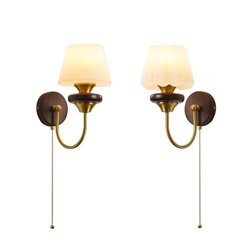 新中式复古壁灯卧室床头灯中古日式侘寂风黑胡桃木实木背景墙灯具