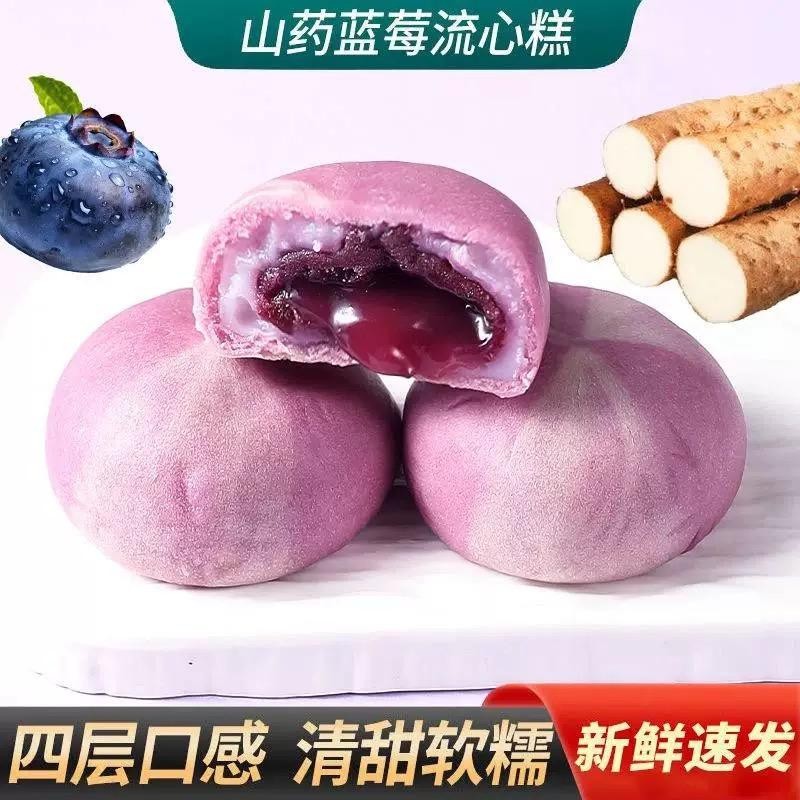 山药蓝莓流心糕爆浆红豆饼酥无蔗糖冰皮糕点健康小零食点心解馋