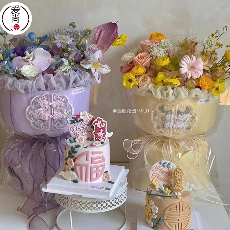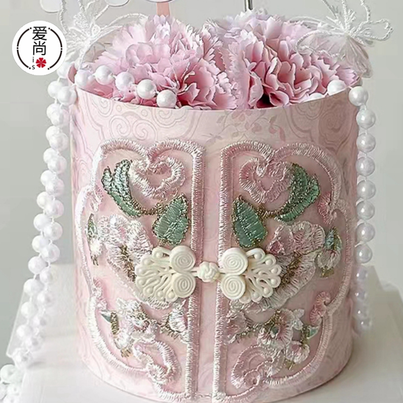 母亲节新品云锦刺绣布贴鲜花花束配饰盘扣手工花艺礼物包装材料
