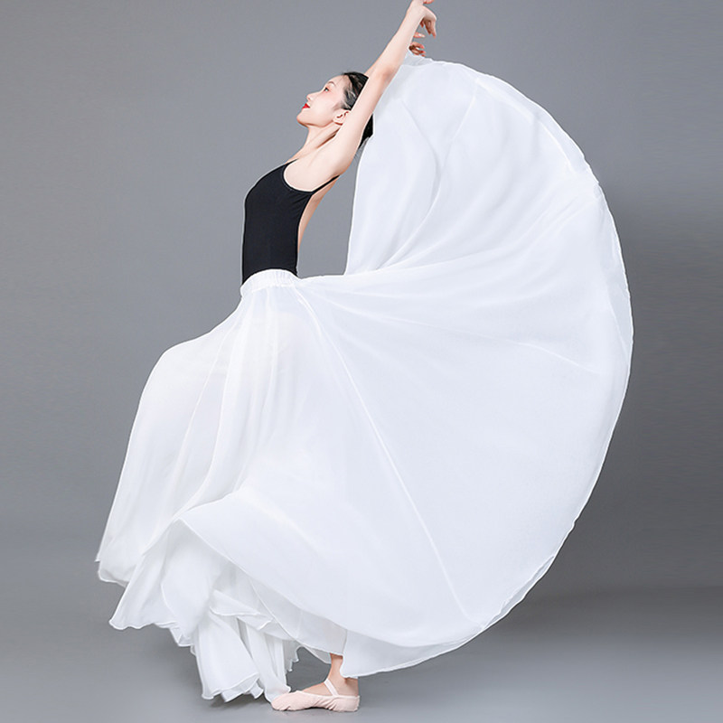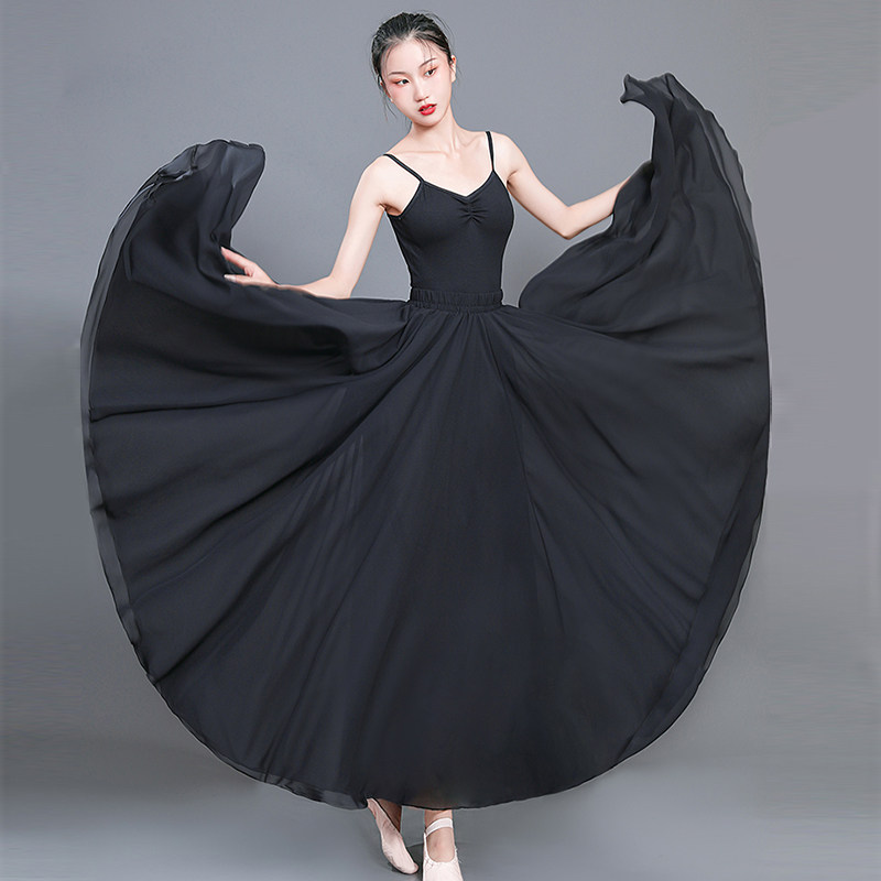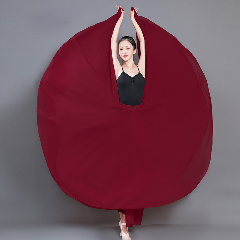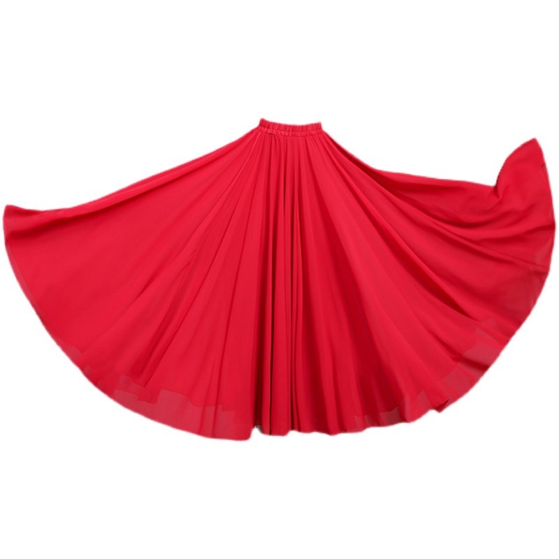 大红色现代舞蹈半身裙新疆舞裙720度大摆裙飘逸文艺双层雪纺长裙