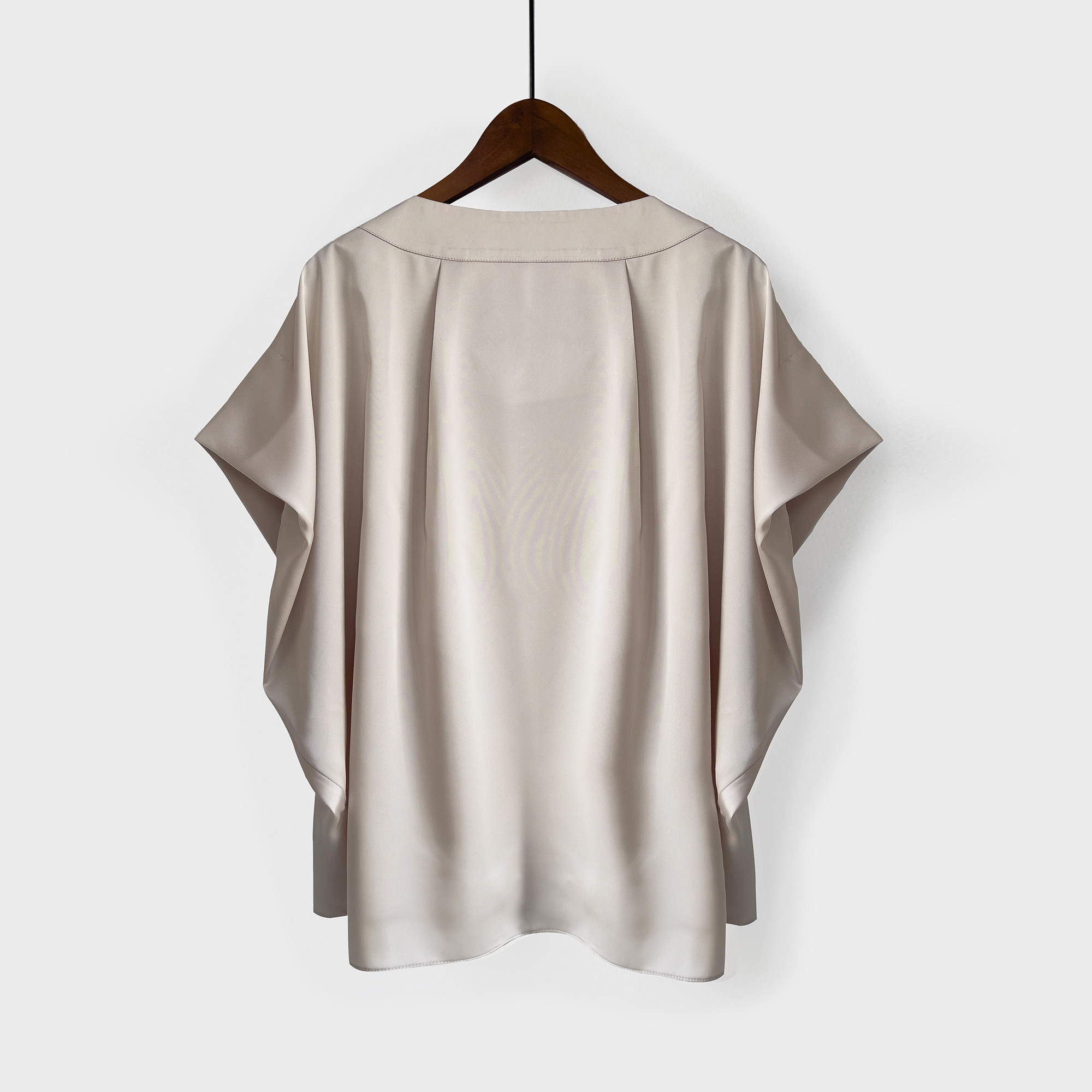2025春夏新款圆领套头衬衫短袖蝙蝠衫宽松短袖垂感上衣大码T恤