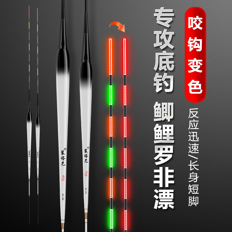 高灵敏罗非夜光漂咬钩变色浮漂短脚电子漂鲫鱼日夜两用细长身鱼漂