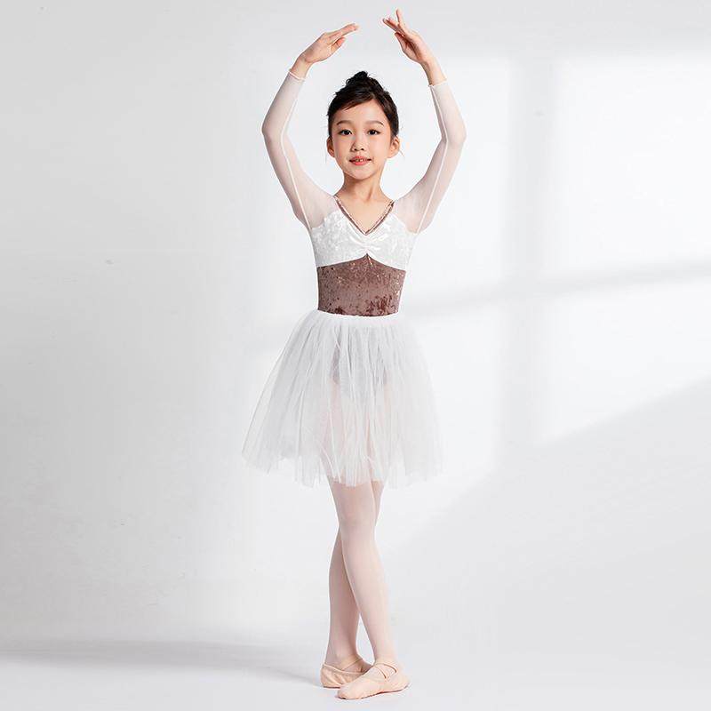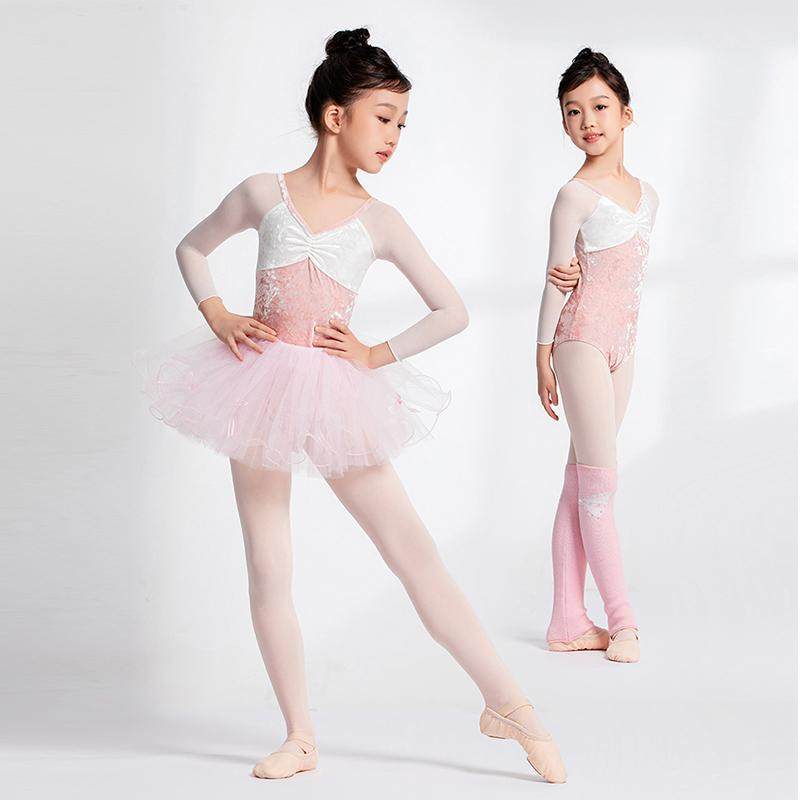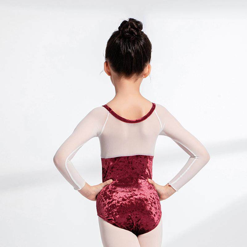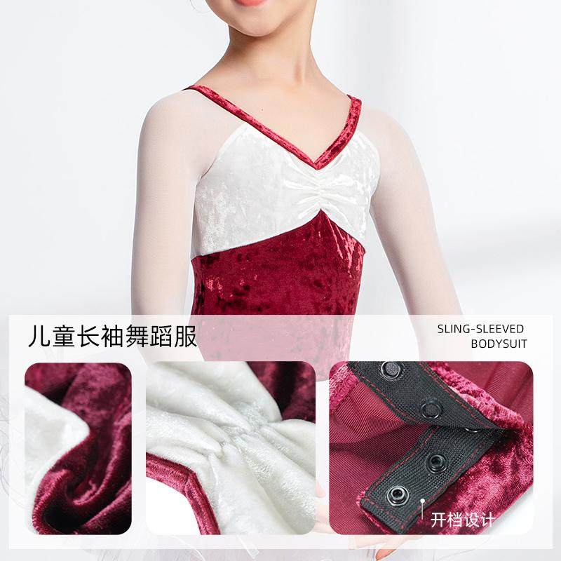 sansha 三沙儿童舞蹈服女 钻石绒芭蕾舞连体服网纱七分袖练功服