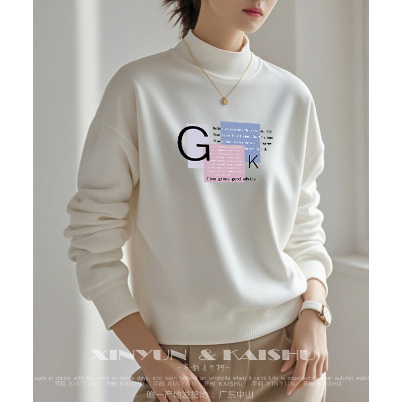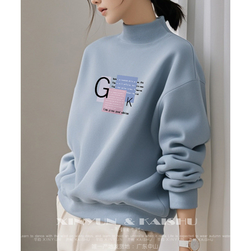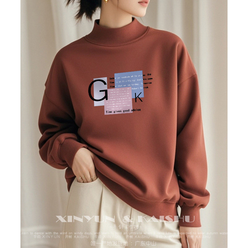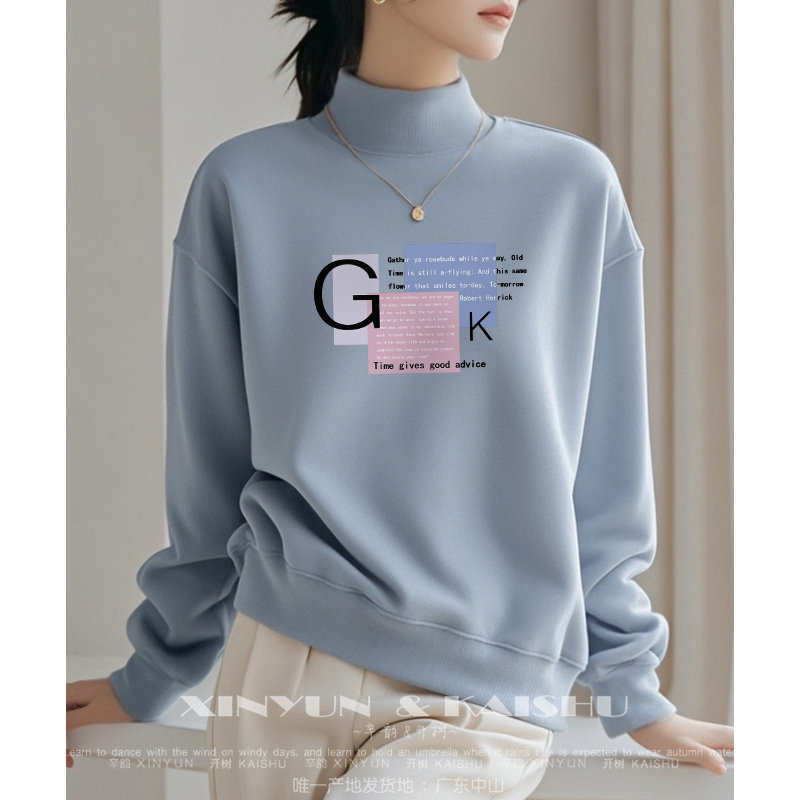 半高领卫衣女纯棉宽松加绒春秋季打底衫内搭中领套头长袖高级感