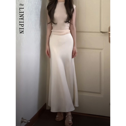 高级感醋酸半裙女秋季大码绸缎气质包臀鱼尾裙胖mm高端精致半身裙