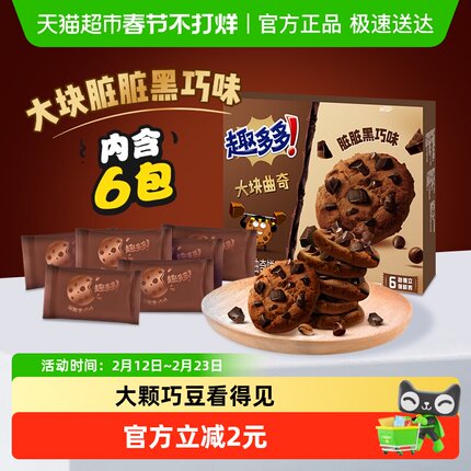 趣多多大块曲奇饼干浓郁黑巧克力味盒装网红休闲零食儿童早餐亿滋