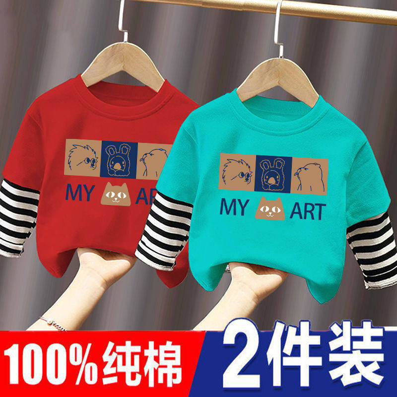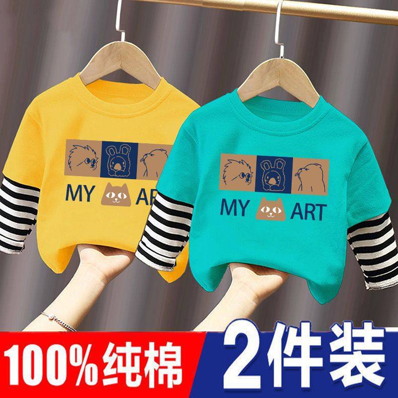 男童打底衫春秋季宝宝长袖上衣纯棉2025新款中小童条纹假两件T恤