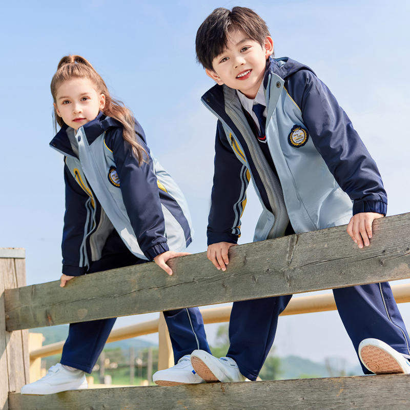 小学生校服冲锋衣三件套儿童班服中学生秋季套装幼儿园园服秋冬装