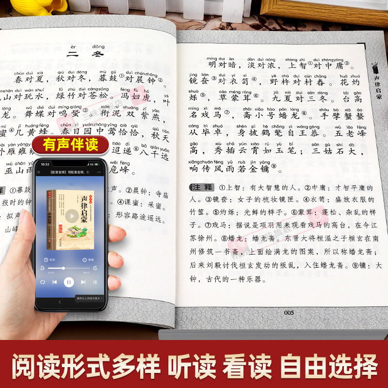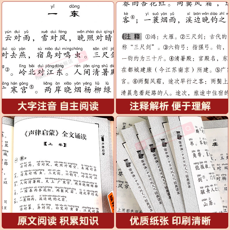 声律启蒙正版注音版 中华国学经典诵读儿童版完整版启蒙原文注释小学生一年级二三年级阅读课外书籍必读笠翁对韵歌幼儿绘本千字文