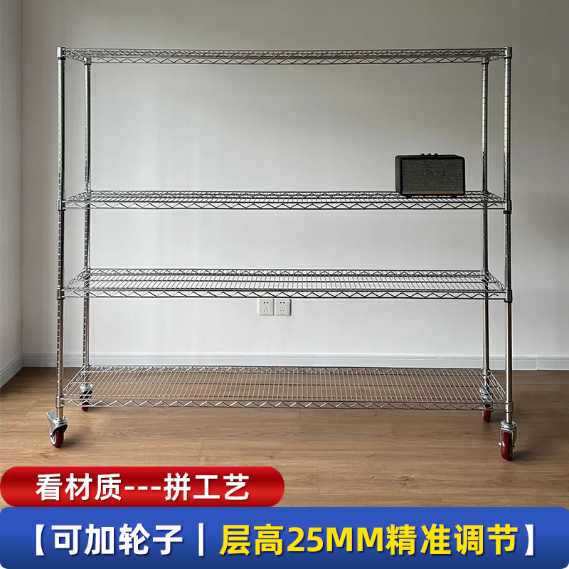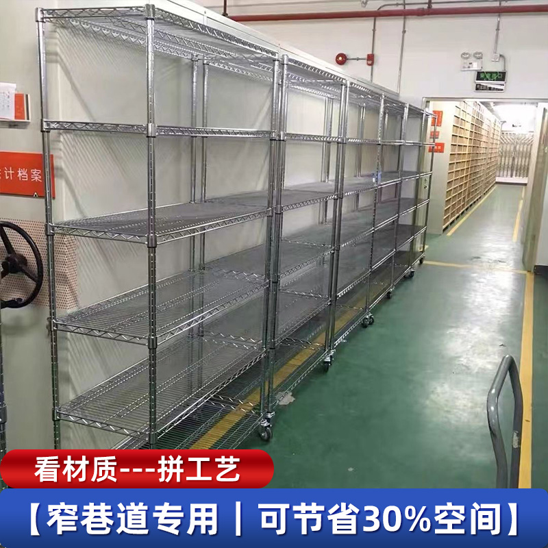 镀铬线网货架工厂周转仓储推车物料架多层置物架不锈钢仓库带轮架