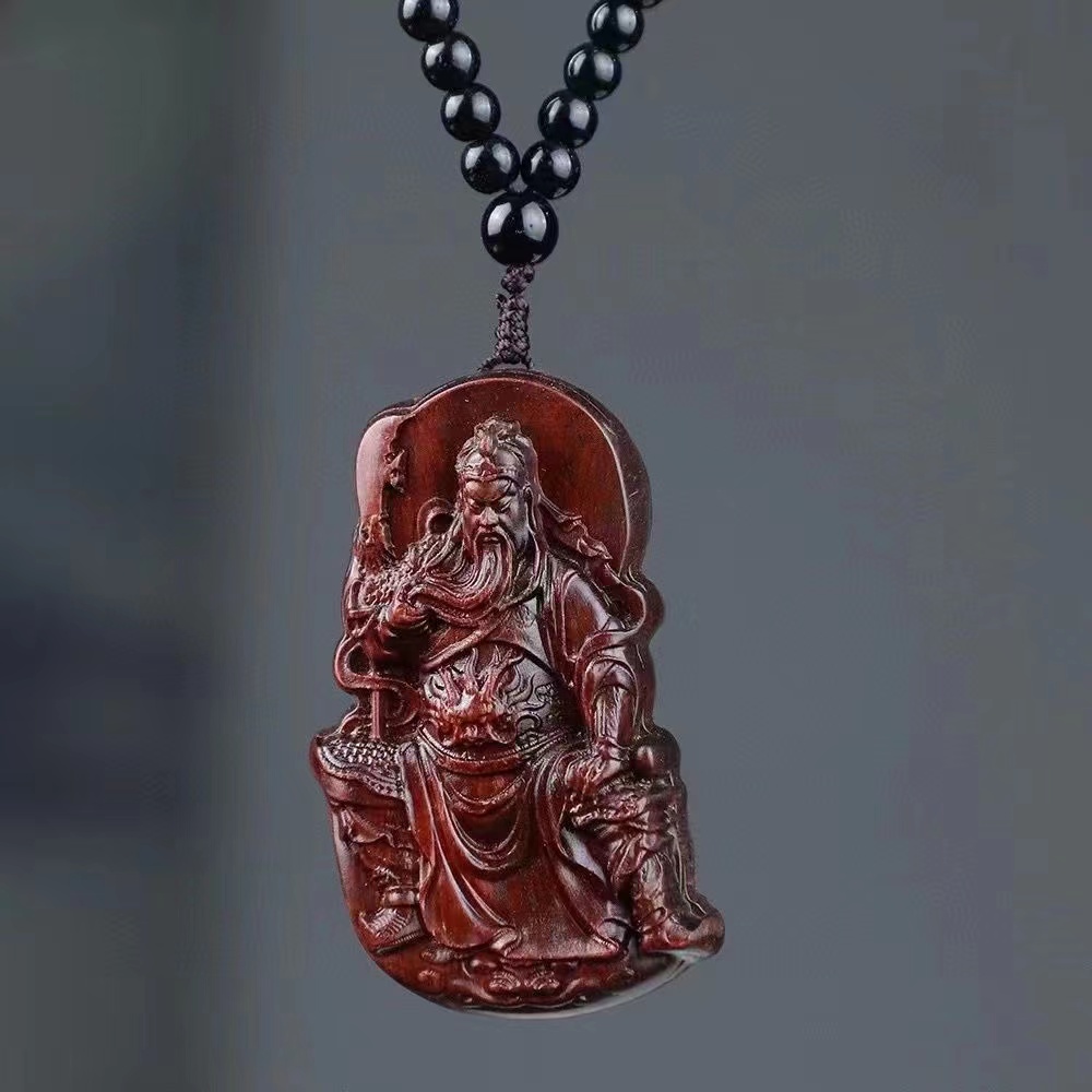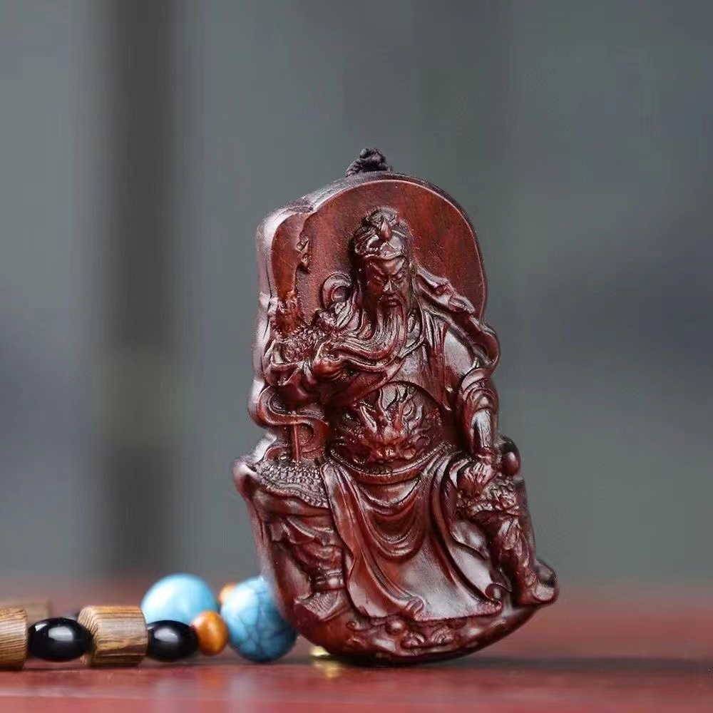 小叶紫檀关公手把件男士实木雕刻工艺品汽车挂件后视镜装饰品吊坠
