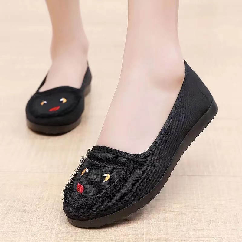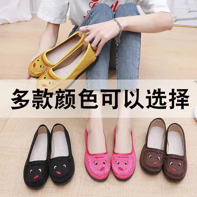 老北京布鞋女春季新款平底休闲浅口一脚蹬透气软底百搭单鞋妈妈鞋