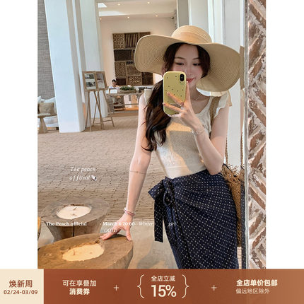 thepeachofficial【拉裴尔暮歌】无袖羊毛针织背心开叉半裙两件套