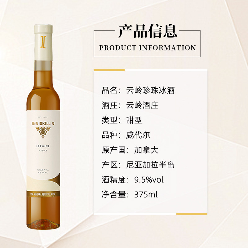 【自营】加拿大inniskillin 云岭珍珠冰酒VQA级甜酒白葡萄酒 2023
