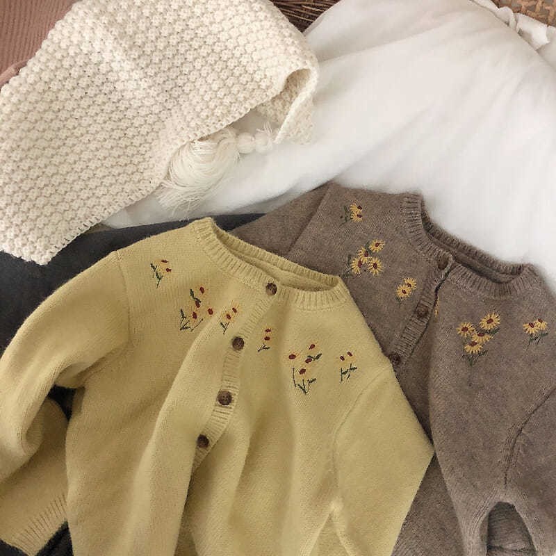 软糯手感~复古洋气很韩的绣花针织开衫春秋装韩国儿童单排扣毛衣