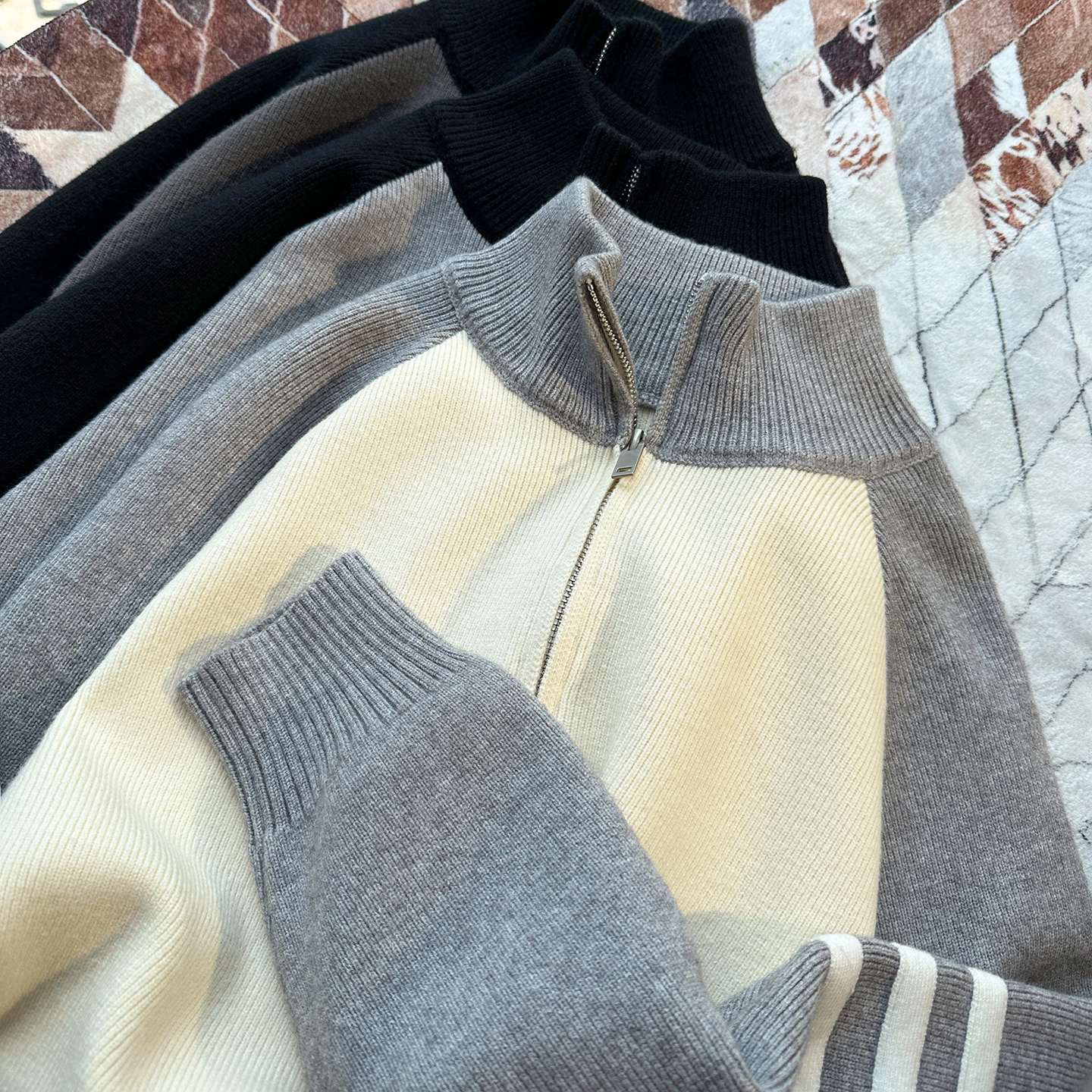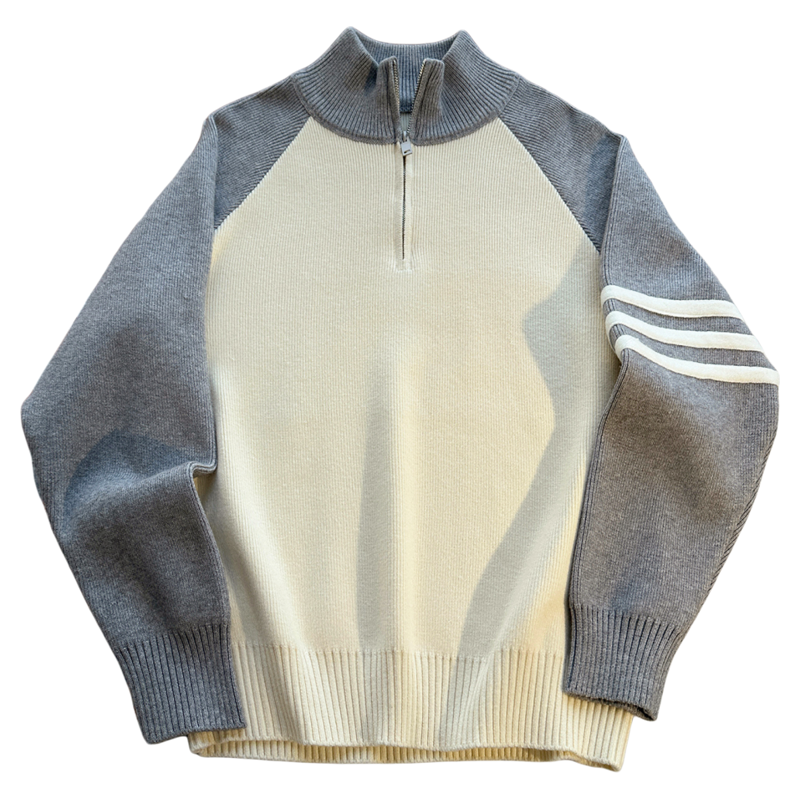三条杠半拉链毛衣男半高领秋冬季保暖加厚慵懒风针织打底衫男外套