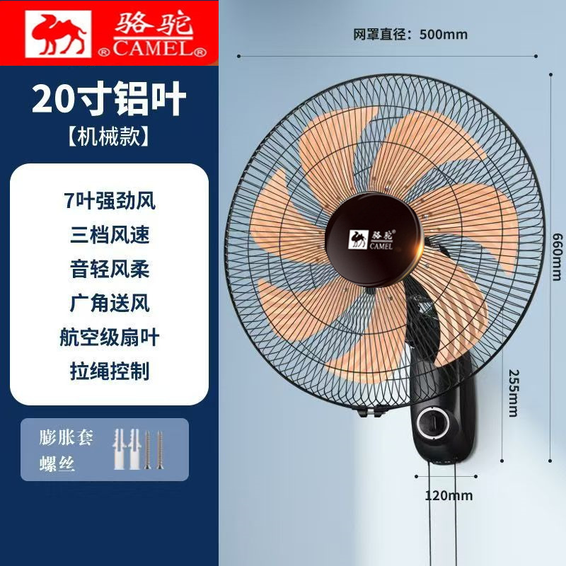 骆驼壁扇挂壁式风扇省电风扇家用饭店宿舍大风力遥控墙壁挂扇铝叶