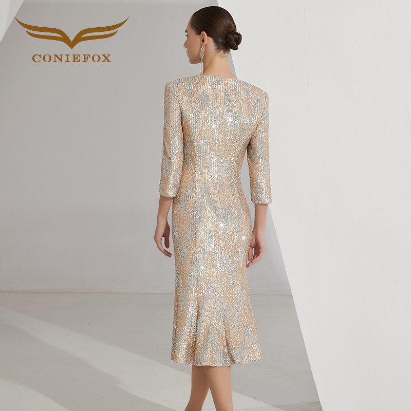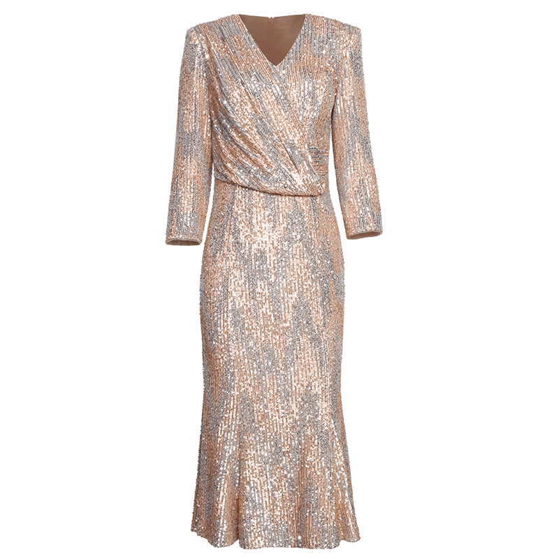 创意狐主持人礼服女轻奢小众高端日常可穿礼裙亮片连衣裙公司年会