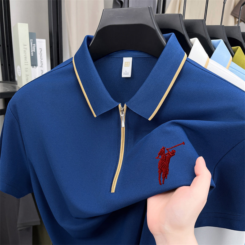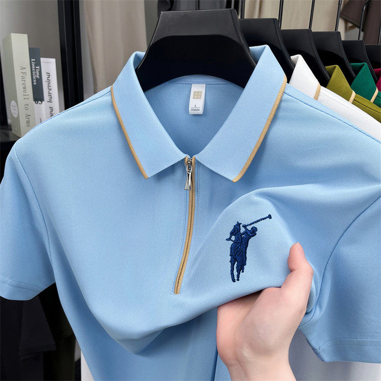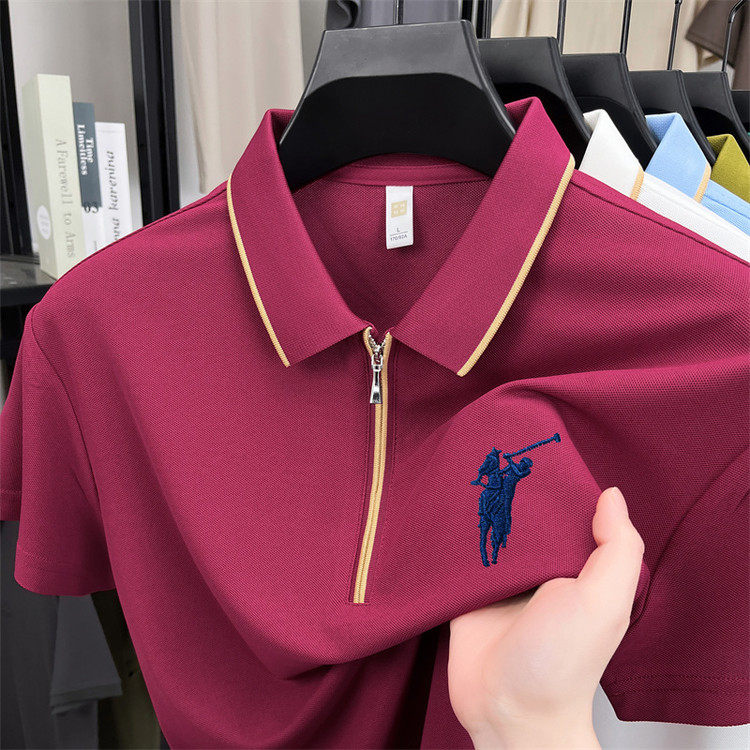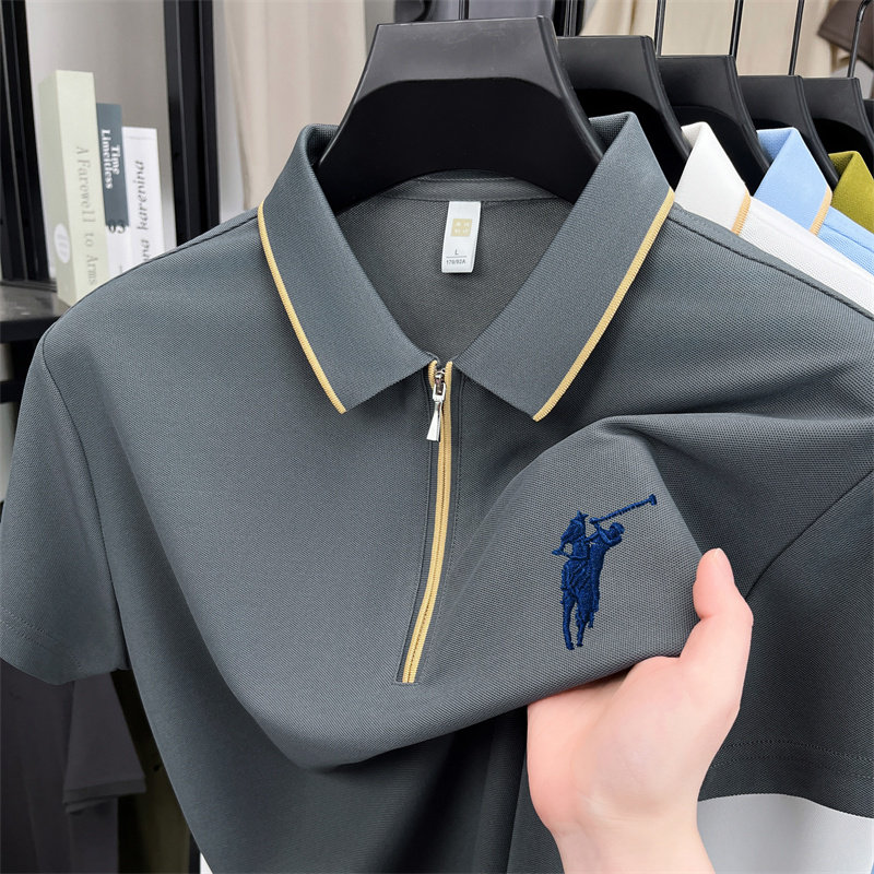 保罗100%纯棉短袖t恤男夏季25新款高端拉链翻领POLO衫薄休闲上衣